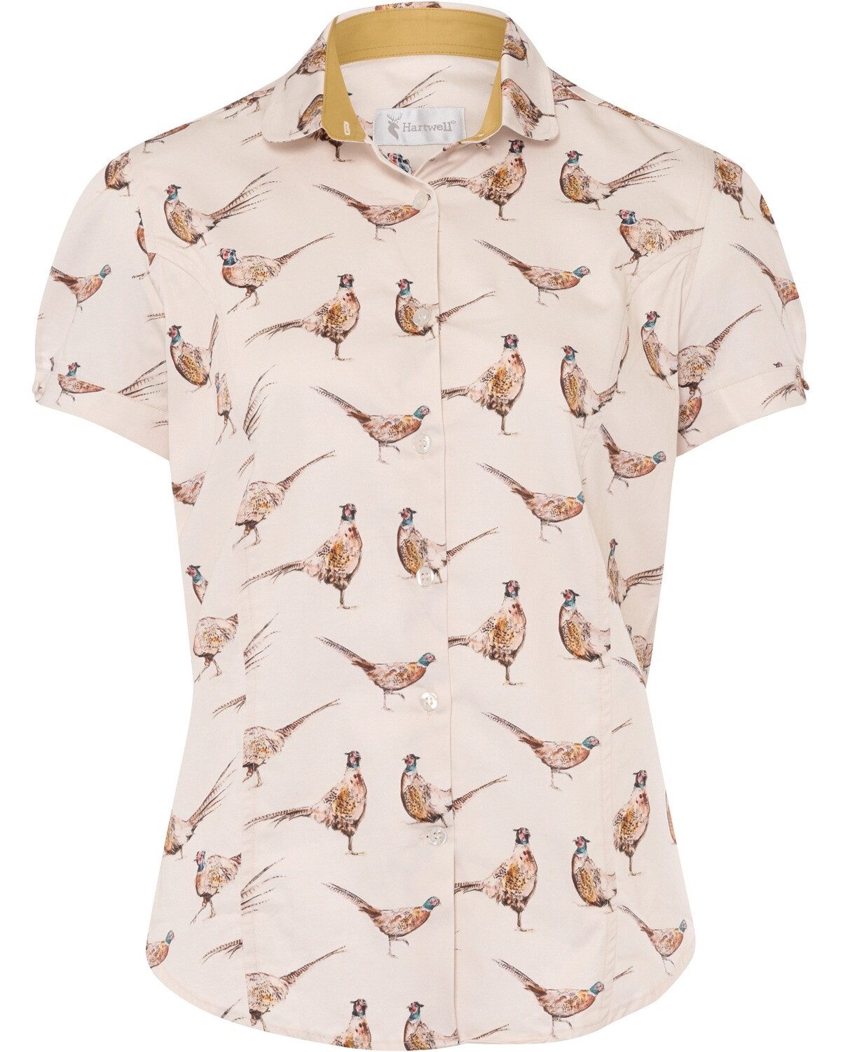 Die Halbarm-Bluse Luna von Hartwell ist ein Beispiel für die gelungene Kombination von Stil und Komfort. Gefertigt aus Baumwolle mit leichtem Stretchanteil, bietet sie ein angenehmes Tragegefühl und eine optimale Passform, die sich dem Körper sanft anpasst. Das detailreiche Fasanenmotiv im Allover-Print verleiht der Bluse einen Hauch von britischem Charme, der sie zu einem besonderen Blickfang macht. Der taillierte Schnitt betont die feminine Silhouette, während der kurze Hemdblusenkragen dem Design eine elegante Note hinzufügt. Ein besonderes Highlight ist die kontrastfarbige Innenseite des Kragens, die subtile Akzente setzt und das Gesamtbild stilvoll abrundet. Die kurzen Ärmel schließen mit einer schmalen Manschette ab, wodurch die Bluse eine zusätzliche Prise Raffinesse erhält. Diese Bluse ist ideal für modebewusste Frauen, die sowohl auf Qualität als auch auf stilvolle Details Wert legen. Ob im Büro oder bei einem entspannten Ausflug, die Luna Bluse fügt sich nahtlos in den British Country Style ein und ist vielseitig kombinierbar zu Röcken, Hosen oder Jeans. Oberstoff: 97% Baumwolle, 3% Elasthan