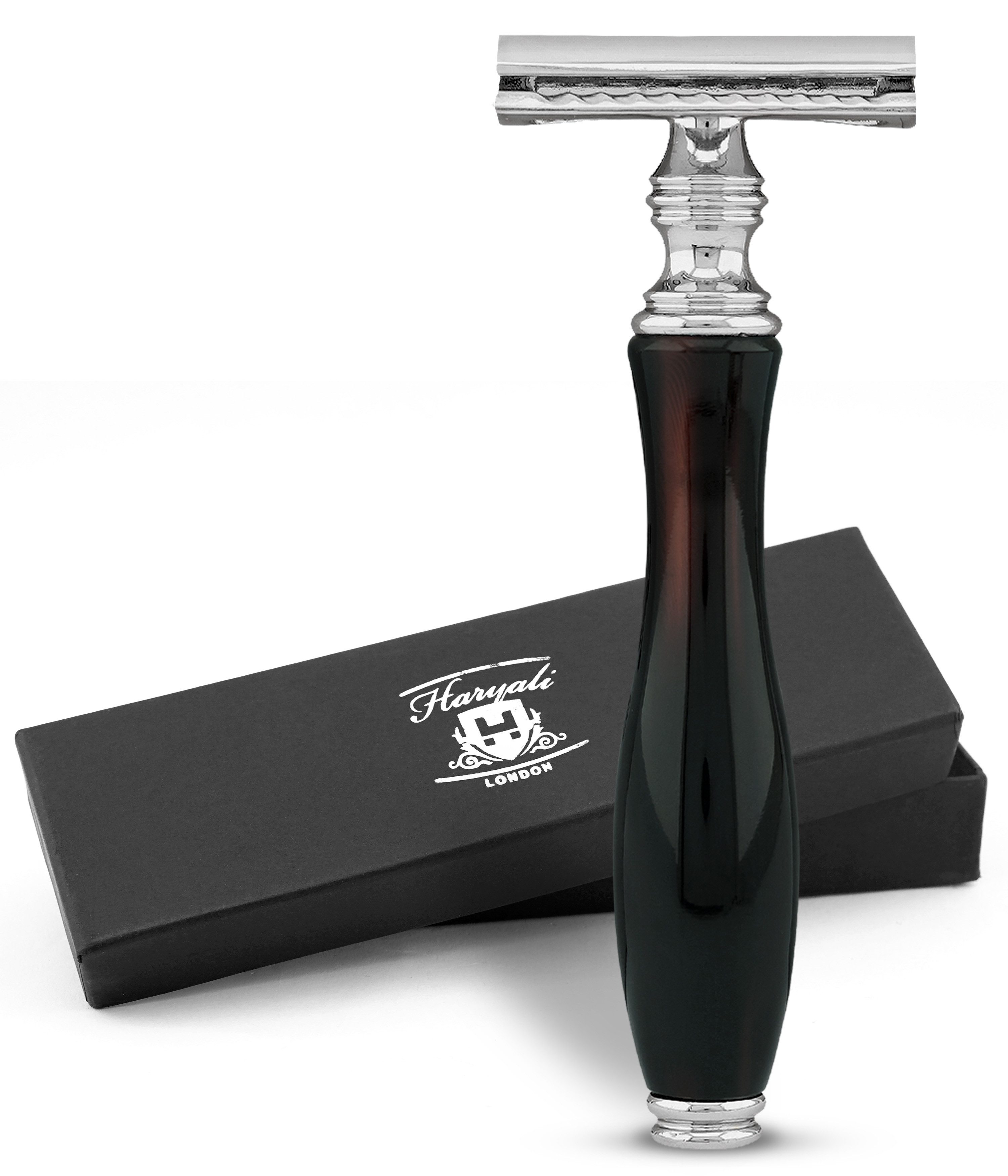 Haryali London Nassrasierer Rasierhobel mit Doppelklinge für Damen und Herren, Harz, Rot & Schwarz, Pack, Rutschfester, verstellbarer Nassrasierer aus hochwertigem Messingharz, Abwaschbarer, rutschfester glänzender Harzgriff, bestes Rasiererlebnis