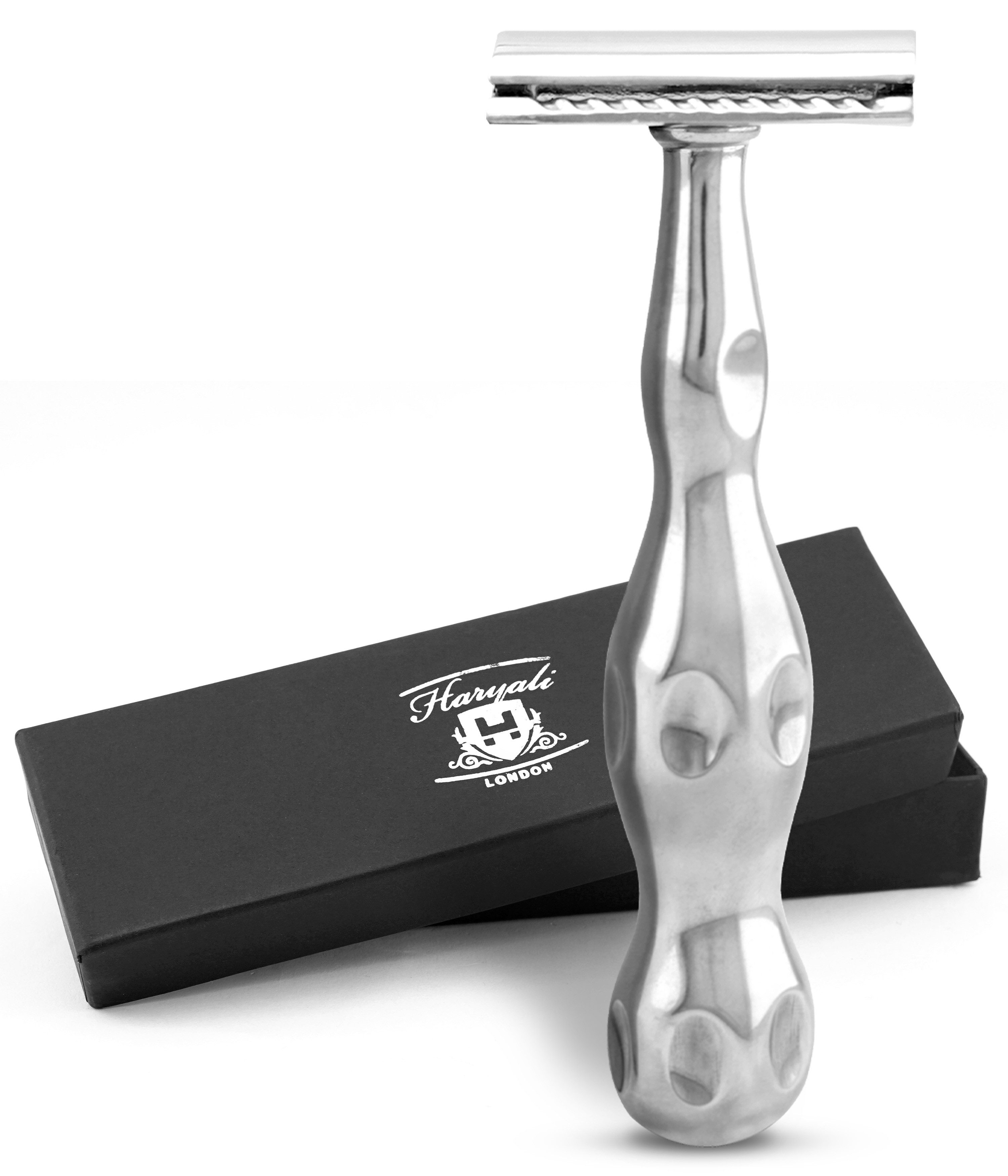 Haryali London Nassrasierer Zweischneidiger Rasierhobel für Unisex, Edelstahl, ergonomisch, Pack, Non-slip stainless steel razor with two replacement blades, Geeignet für alle Arten von zweischneidigen Rasierhobelklingen