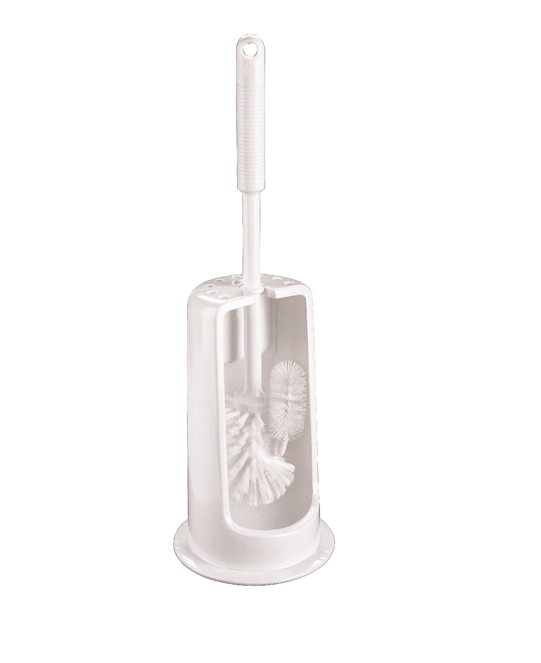 Diese Rundbürste mit Randreinigerbürste bleibt geschützt in der runden Garnitur und sorgt für Schutz vor Spritzern mit einem einfachen System des Einhakens der Klobürste. Schluss mit ewigen Fummeleien einer steckenden Klobürste. Ganz einfach Einhaken.