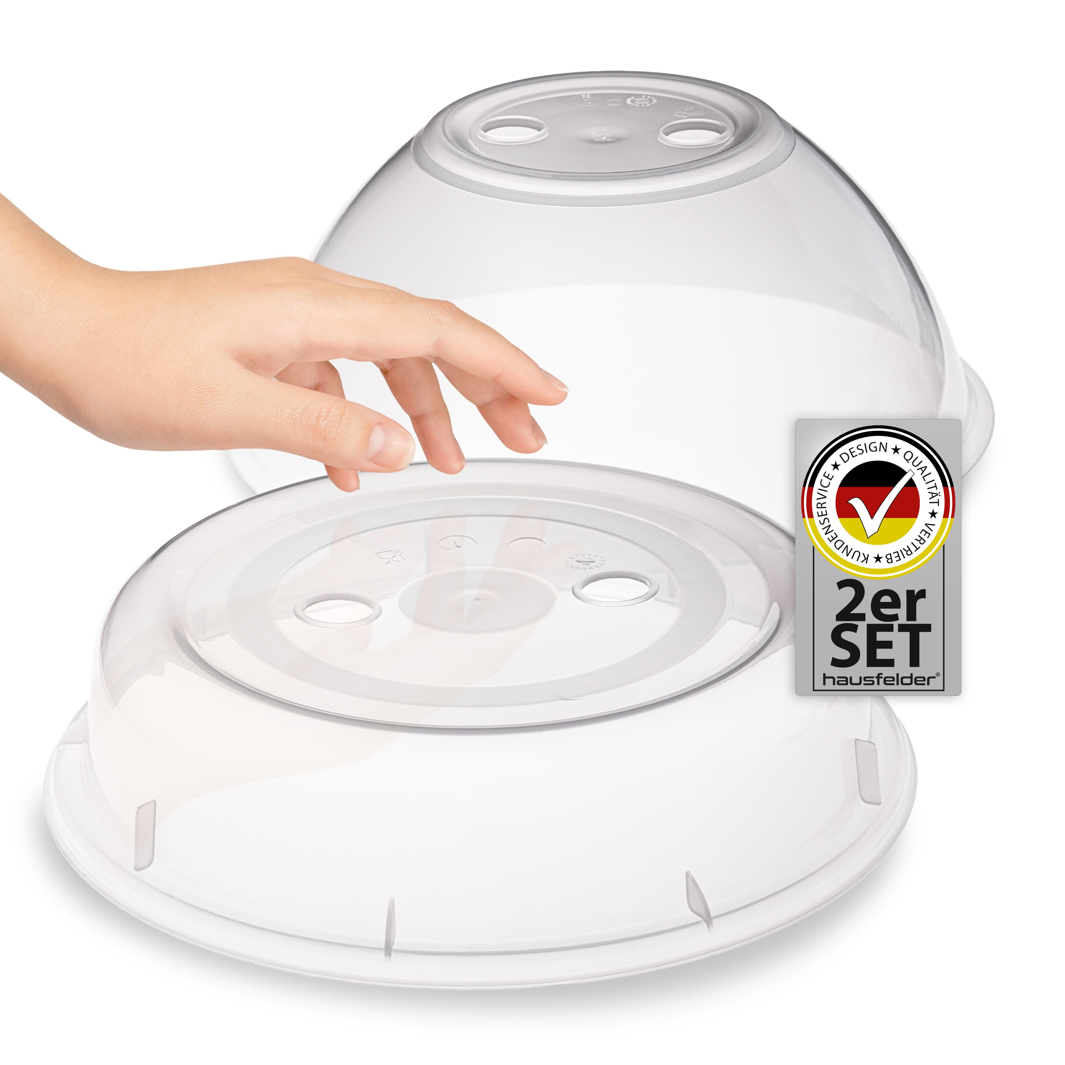 Effektiver Spritzschutz in zwei Вариантыn Ganz egal, wie hoch oder niedrig der Teller, die Tasse oder die Schüssel ist: Mit diesen beiden Mikrowellen Abdeckungen schützen Sie die Mikrowelle effektiv vor Spritzern und Verunreinigungen. Neben der Standard Mikrowellenschutz Ausführung von 26,5 cm Durchmesser und 6 cm Höhe erhalten Sie eine besonders große Варианты des Deckels mit 28 cm Durchmesser und 11,5 cm Höhe. Zum Reinigen einfach ganz bequem in die Spülmaschine geben und schon sind die Deckel bereit für die nächste Aufwärm-Runde.