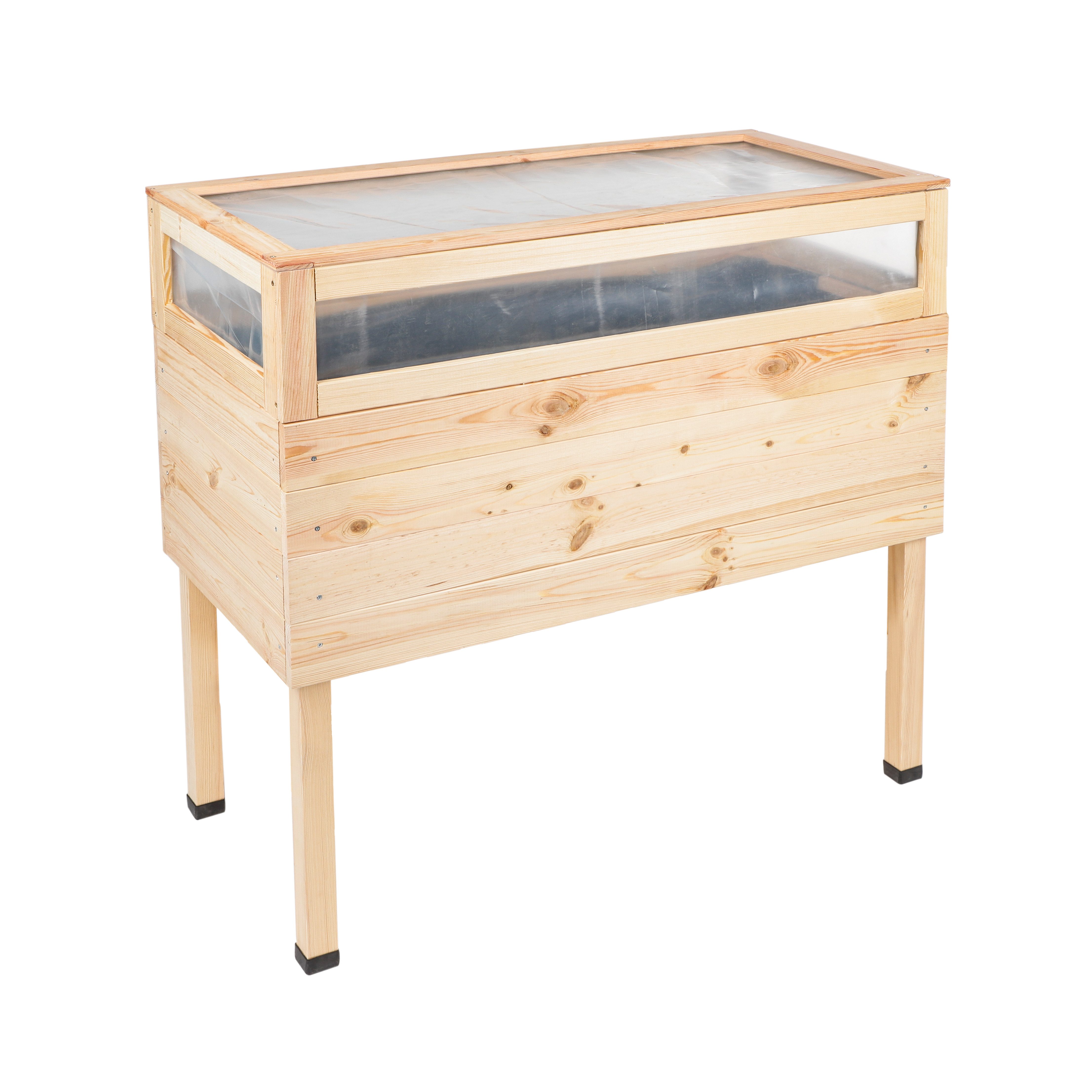 Dieses hochwertige Hochbeet aus naturbelassenem Kiefernholz vereint Funktionalität, Эко-товары und durchdachtes Design in einem. Mit seinen großzügigen Maßen von 105 x 50 x 100 cm (B x T x H) bietet es viel Platz für Gemüse, Kräuter oder Blumen – ganz ohne auf dem Boden arbeiten zu müssen. Dank der angenehmen Arbeitshöhe von 100 cm ist das Beet besonders rückenfreundlich und eignet sich ideal für Hobbygärtner jeden Alters. Das Hochbeet steht stabil auf vier robusten Holzbeinen und ist damit sowohl für den Garten als auch für Terrasse oder Balkon bestens geeignet. Ein besonderes Highlight ist die transparente Kunststoffabdeckung, die wie ein Mini-Gewächshaus funktioniert: Sie schützt Ihre Pflanzen vor Wind, Regen und Kälte – und lässt gleichzeitig genügend Sonnenlicht durch. So entsteht im Inneren ein warmes, geschütztes Mikroklima, das das Wachstum Ihrer Setzlinge optimal unterstützt. Mit einem Fassungsvermögen von ca. 135 Litern bietet dieses Pflanzgefäß reichlich Raum für gesunde Erde und tief wurzelnde Pflanzen. Gefertigt aus unbehandeltem Kiefernholz, bringt dieses Hochbeet natürliche Ästhetik in Ihren Außenbereich. Die Farbe Natur unterstreicht den rustikalen Look und harmoniert perfekt mit jedem Gartenstil – ob modern, klassisch oder ländlich. Ob als praktisches Frühbeet, platzsparendes Hochbeet für die Terrasse oder dekorativer Pflanzkübel mit integriertem Gewächshausschutz – dieses Holzhochbeet mit Abdeckung ist die ideale Lösung für alle, die nachhaltig und platzsparend gärtnern möchten.