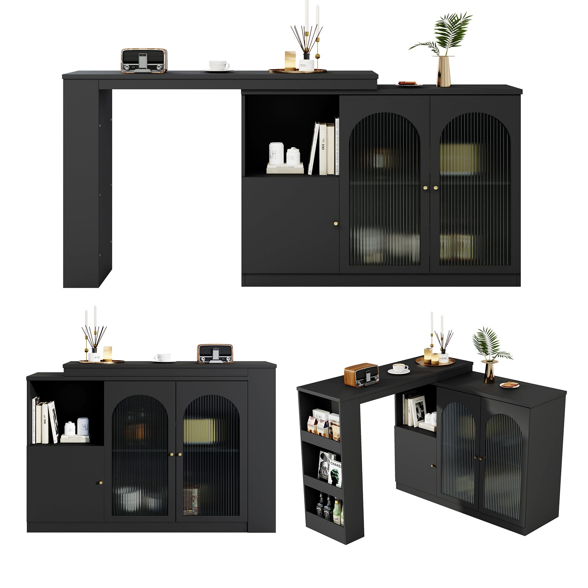 Dieser Ess- und Barschrank überzeugt mit einem einzigartigen 360° drehbaren Design, das sich flexibel an verschiedene Wohnszenen und Bedürfnisse anpasst. Ob in der Küche, im Esszimmer oder Wohnzimmer – der Schrank kann als praktischer Arbeitsplatz für die Essenszubereitung, als stilvoller Barschrank oder als Ablagetisch im Alltag genutzt werden.