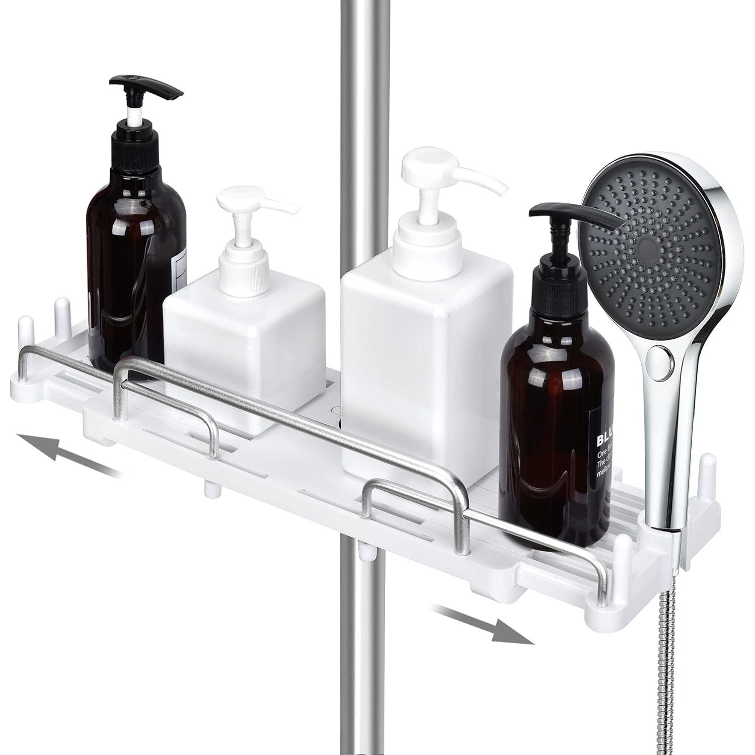 Langlebig und platzsparend: Dieses Produkt ist eine rationelle Nutzung des Raums um die Duschstange herum, auf der die meisten Badartikel platziert werden können, z. B. Handtücher, Tassen, Duschgel, Shampoo, Kämme, Seife, Conditioner, Rasierer und mehr , helfen Ihnen, Platz zu sparen.