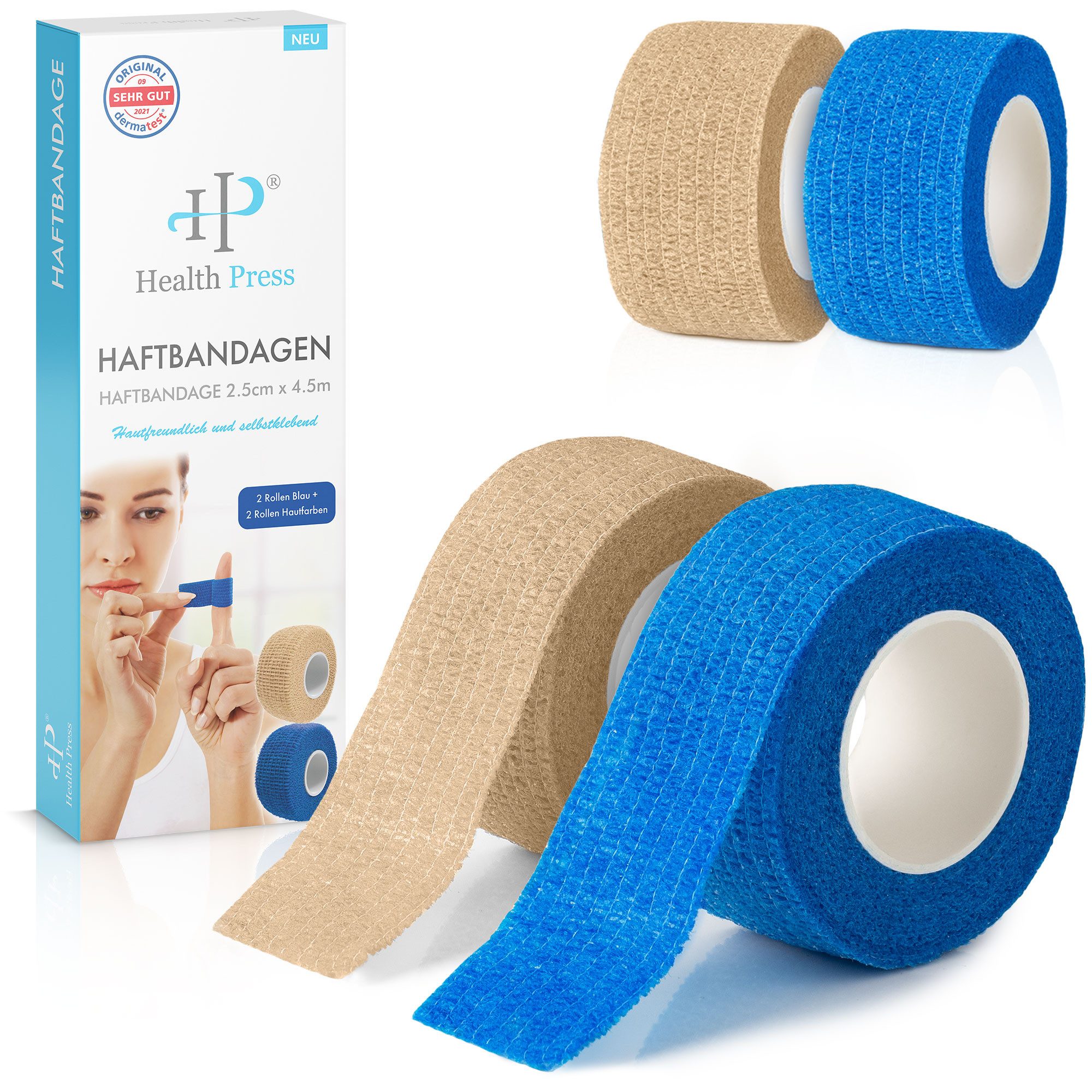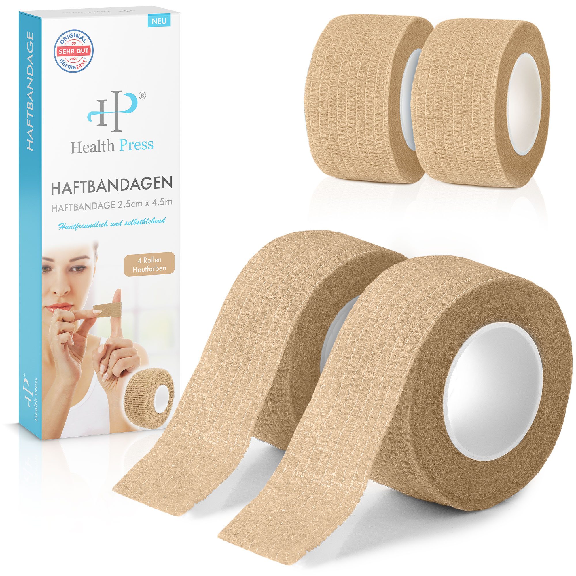 DERMATOLOGISCH GETESTET: Der Fixierverband von Health Press wurde von der DERMATEST GmbH im September 2021 mit „SEHR GUT“ bewertet.
