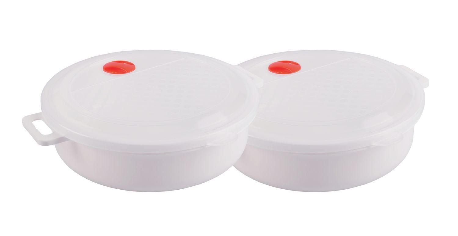 Praktische Töpfe mit Deckel und Ventil zum Aufwärmen von Speisen in der Mikrowelle. Die Kasserollen sind aus einem mikrowellengeeignetem Kunststoff hergestellt und für Temperaturen von -40°C bis +120°C geeignet.
