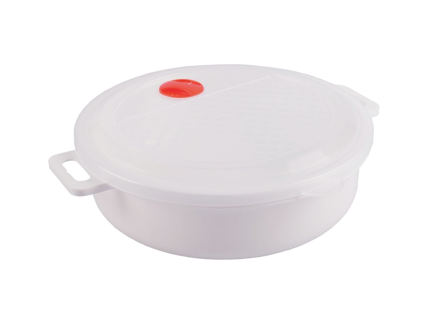 Praktischer Topf mit Deckel und Ventil zum Aufwärmen von Speisen in der Mikrowelle. Die Kasserolle ist aus einem mikrowellengeeignetem Kunststoff hergestellt und für Temperaturen von -40°C bis +120°C geeignet.