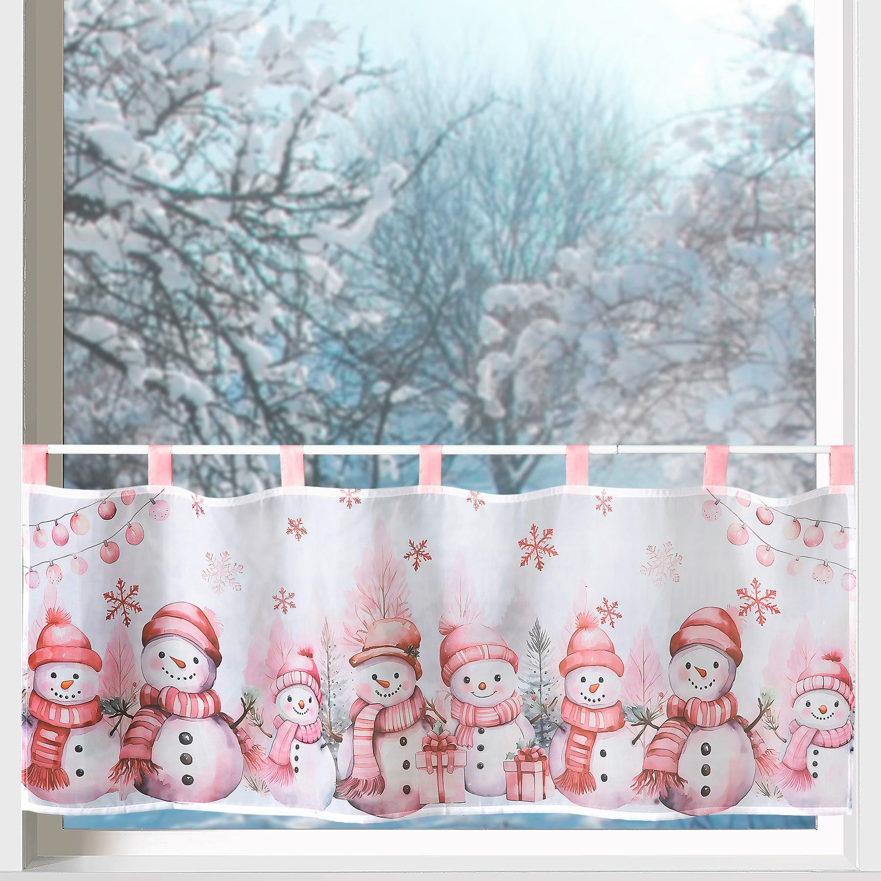 Heimtexland ® Scheibengardine Weihnachten – Fensterdeko mit Schneemann Verleihen Sie Ihrem Zuhause in der Adventszeit einen zauberhaften Akzent mit der Heimtexland ® Scheibengardine Weihnachten. Diese liebevoll gestaltete Weihnachtsgardine begeistert nicht nur durch ihren niedlichen Schneemann-Print, sondern auch durch ihre transparente Leichtigkeit, die Licht ins Zimmer lässt. Produktdetails: •Maße: HxB ca. 45 x 120 cm – ideal für Fenster in Küche, Wohnzimmer, Schlafzimmer oder Kinderzimmer •Material: Hochwertiger, transparenter Stoff, der für eine luftige Atmosphäre sorgt und gleichzeitig Ihre Privatsphäre schützt. •Design: Fröhliche Schneemänner, perfekt für alle, die ein Stück Winterzauber ins Zuhause bringen möchten. •Befestigung: Schlaufen für eine einfache und schnelle Anbringung an handelsüblichen Gardinenstangen. Einsatzmöglichkeiten: Diese hübsche Scheibengardine eignet sich hervorragend für die festliche Dekoration in der Adventszeit. Ob in der Küche, im Wohnzimmer oder im Kinderzimmer – sie bringt ein Lächeln in jeden Raum. Pflegehinweise: Maschinenwaschbar bei niedrigen Temperaturen, einfach und praktisch im Alltag. Geprüfte Qualität: 100% Polyester - frei von Schadstoffen Setzen Sie mit der Heimtexland ® Scheibengardine Weihnachten einen charmanten Blickfang und lassen Sie Ihre Fenster im festlichen Glanz erstrahlen!
