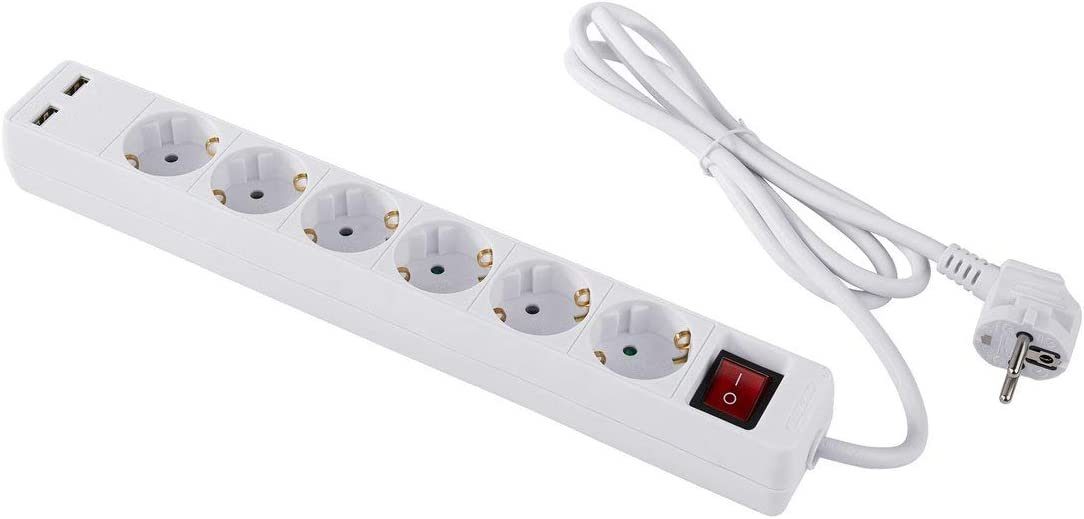 6-Wege-Steckdosenleiste mit 2 USB-Anschlüssen mit Schalter Mehrfachsteckdose