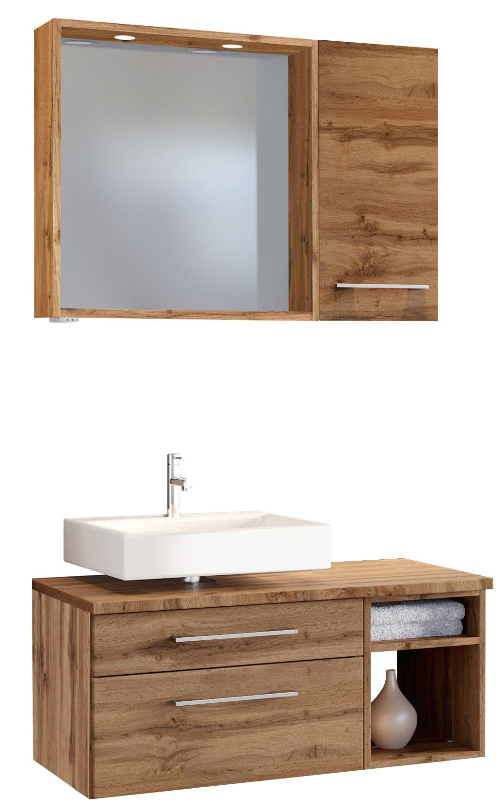 Badmöbel-Set Unterbecken-Set Davos 90 cm -B- (links) Wotaneiche/Wotaneiche