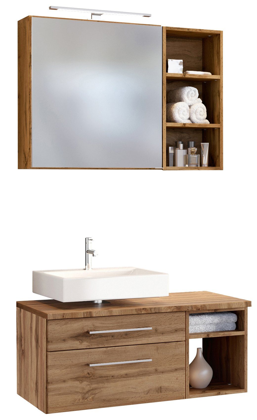 Badmöbel-Set Unterbecken-Set Davos 90 cm -E- (links) Wotaneiche/Wotaneiche