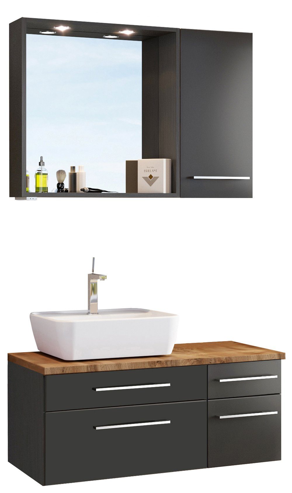 Badmöbel-Set Waschtisch-Set Davos 90 cm -D- (links) graphit/matt grau