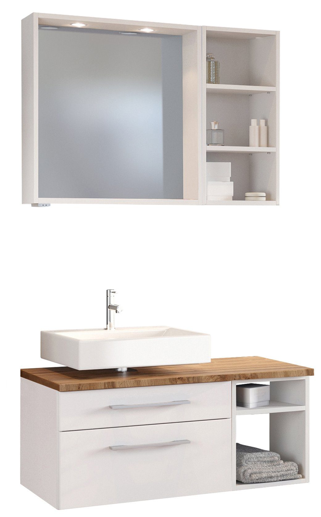 Badmöbel-Set Unterbecken-Set Davos 90 cm -A- (links) weiß/matt weiß