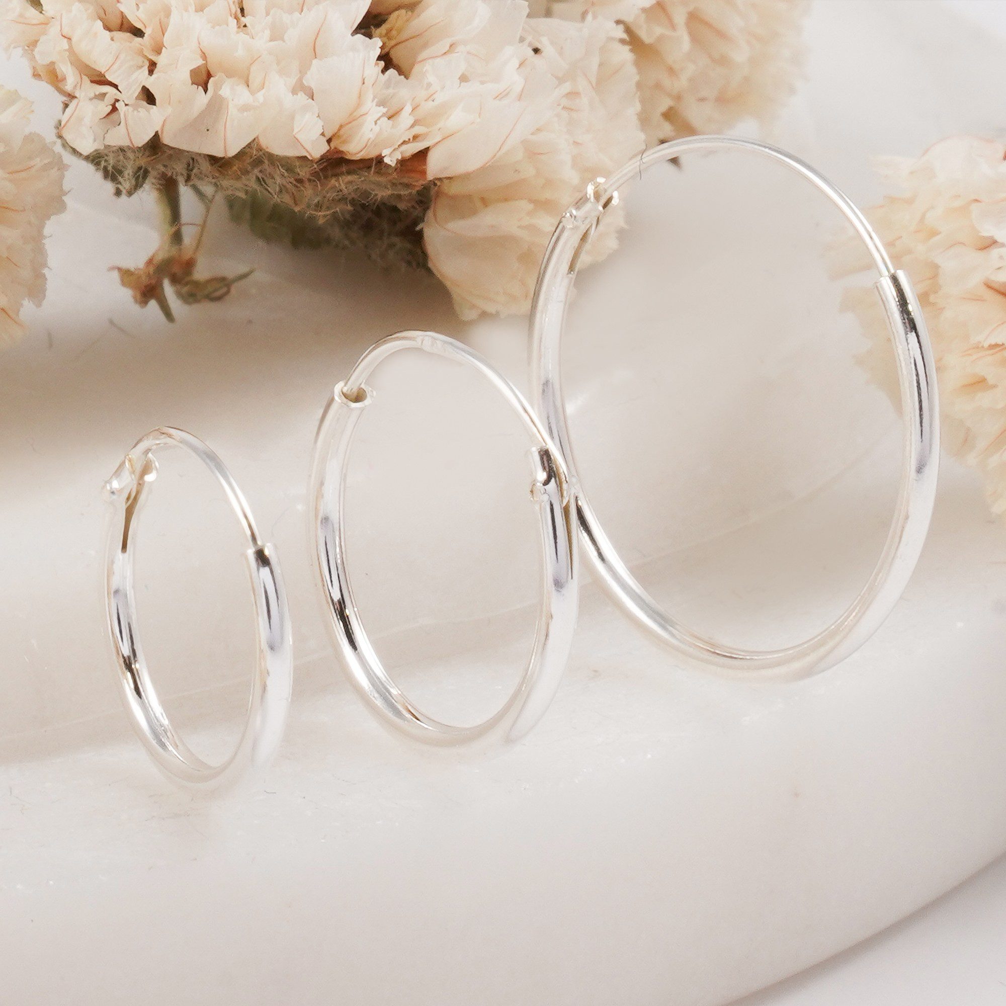 Unser Silberohrring-Set umfasst drei verschiedene Größen, die zu jeder Stimmung und jedem Anlass passen. Ob Sie einen subtilen und zarten Look oder eine kühne und auffällige Aussage bevorzugen, hat dieses Set Sie abgedeckt.