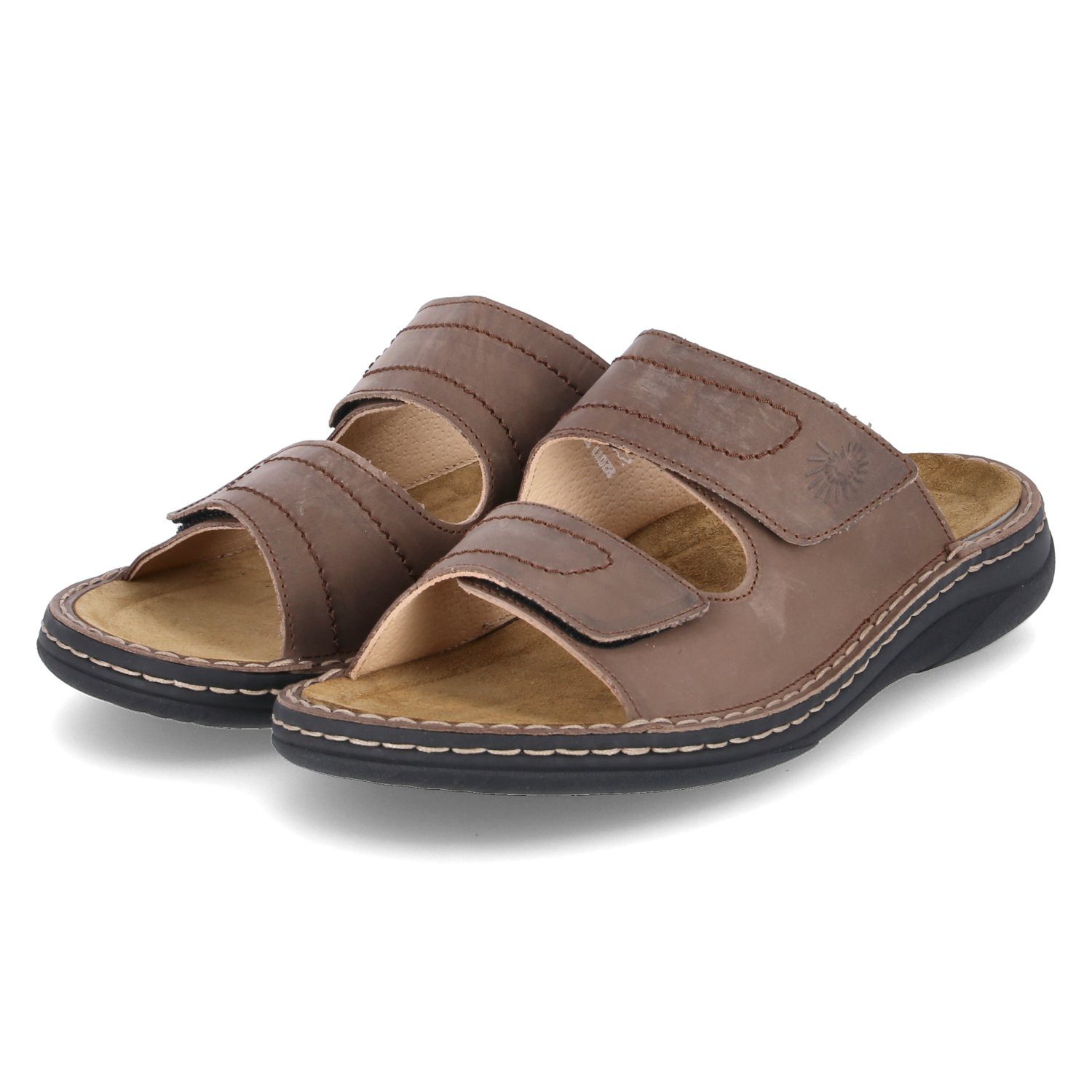 Helix Herren Pantoletten Braun Leder - zwei breite Riemen mit Klettverschluss - angenehmes Lederfutter - leicht gepolstertes Tieffußbett mit Lederdecksohle - flexible, rutschhemmende Sohle mit dezentem Profil