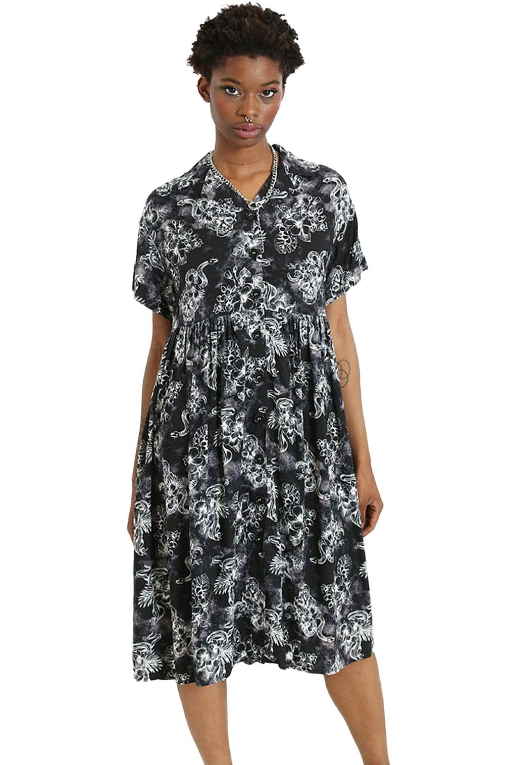 Besondere Merkmale | Gothic Tattoo Print Blusenkleid |