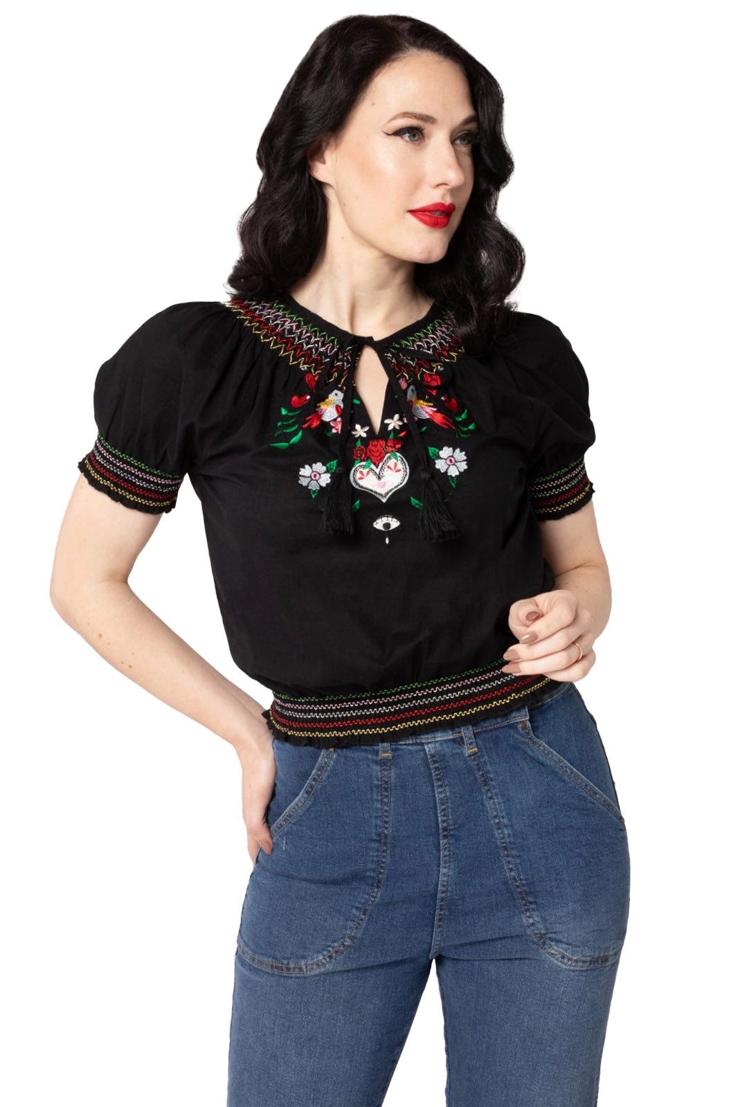 Besondere Merkmale | Vintage Retro Bestickt Blumen Vögel |