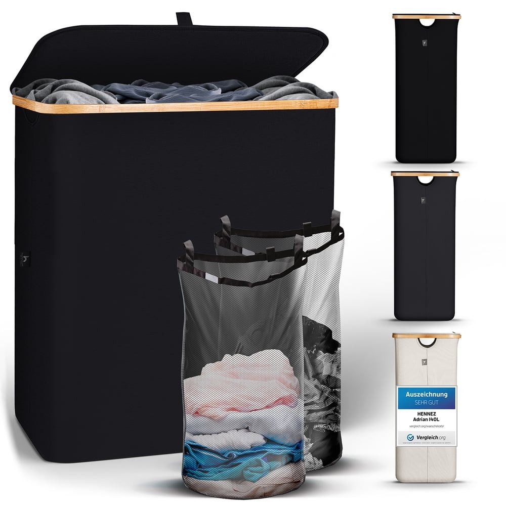 Auch der Aufbau ist kinderleicht: Innerhalb von 3 Minuten steht die faltbare Wäschebox stabil und einsatzbereit. Sollte sie mal nicht gebraucht werden, kannst du sie platzsparend zusammenklappen. Der Bambusrahmen sorgt nicht nur für eine elegante Optik, sondern auch für Stabilität. Hol dir jetzt den HENNEZ Wäschesortierer – die perfekte Kombination aus Funktionalität, Design und Komfort für dein Zuhause!