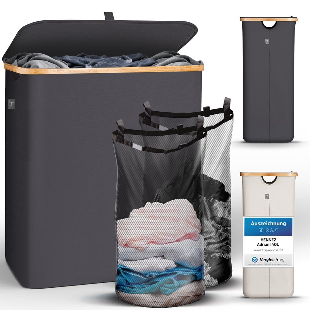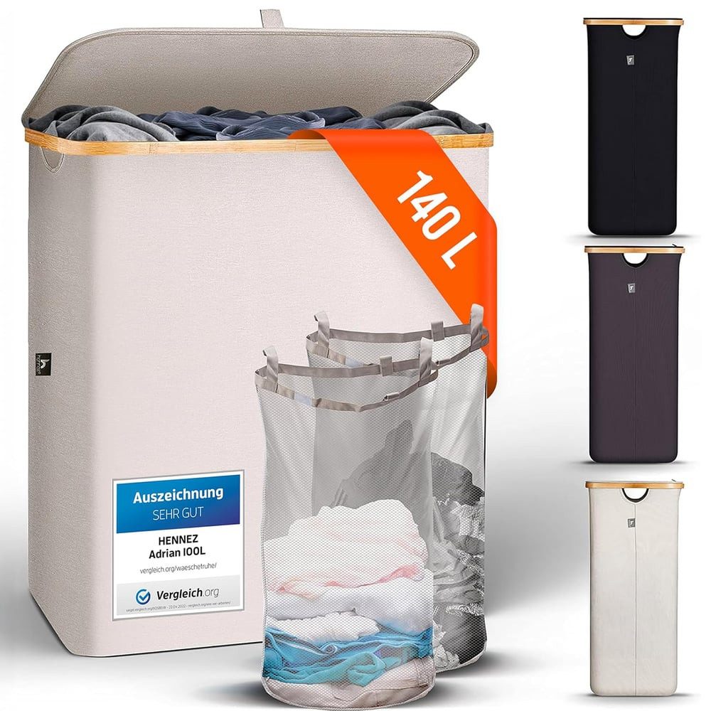 Ordnung und Stil – dein perfekter Wäschesortierer! Mit 140 Litern Fassungsvermögen bietet der HENNEZ Wäschekorb mit Deckel jede Menge Platz, um deine Schmutzwäsche ordentlich und geruchsfrei aufzubewahren. Das elegante Design in Beige-Grau fügt sich nahtlos in jedes Zuhause ein. Ob im Badezimmer, Schlafzimmer oder Kinderzimmer – diese Wäschetonne ist nicht nur praktisch, sondern auch ein echter Blickfang. Perfekt für alle, die Wert auf Ordnung und Stil legen.