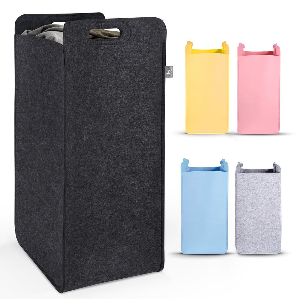Der ideale Wäschesammler für dein Zuhause! Mit dem Hennez Wäschesammler aus Filz schaffst du Ordnung und Stil in einem. Mit einem großzügigen Fassungsvermögen von 75 Litern bietet er dir jede Menge Platz für deine Schmutzwäsche. Dank seiner schmalen, hohen Form eignet er sich perfekt als Wäschesortierer oder Trennsystem – ideal, um helle und dunkle Wäsche unkompliziert zu trennen. Ob im Schlafzimmer, Badezimmer oder Kinderzimmer, dieser Wäschekorb macht in jedem Raum eine gute Figur und bringt modernes Design in dein Zuhause.