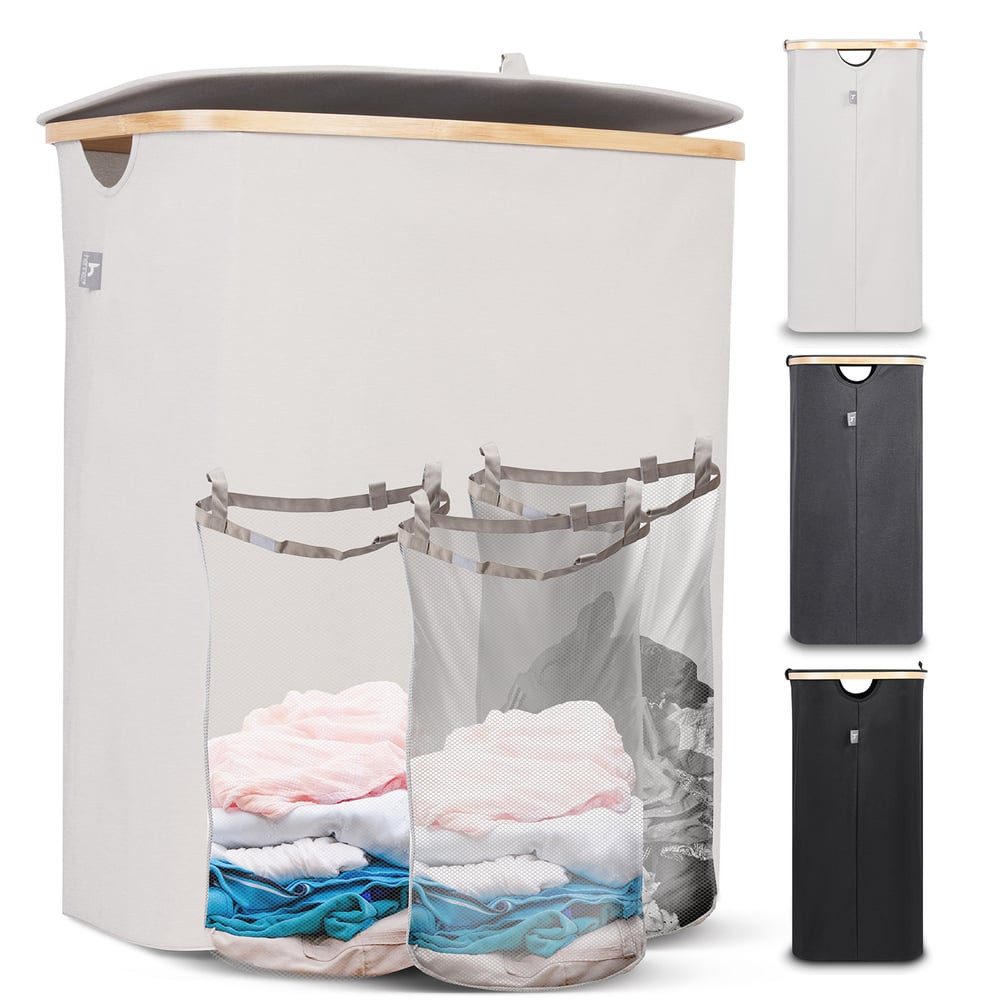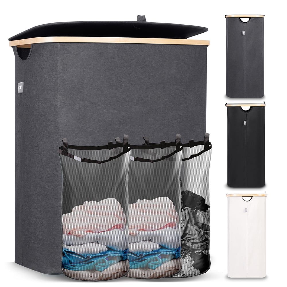 Das clevere Design erleichtert dir den Alltag: Mit den drei praktischen Unterteilungen kannst du deine Wäsche von Anfang an perfekt organisieren. Dank der robusten Klettverschlüsse lassen sich die Innensäcke einfach entnehmen und bequem zur Waschmaschine tragen. Ob für einen Single-Haushalt oder eine große Familie – dieser Wäschekorb ist ideal für alle, die Ordnung mit Stil kombinieren möchten.