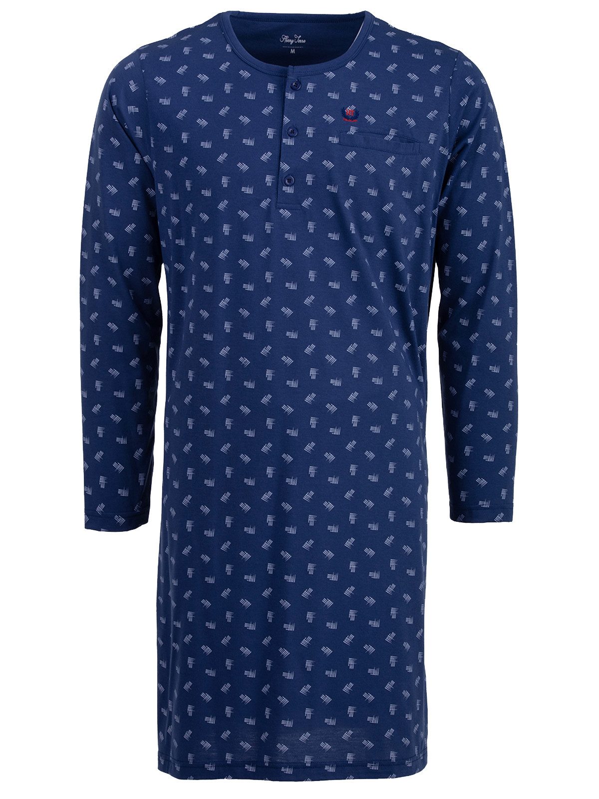 Langarm Nachthemd für Herren in moderner Optik. Das Shirt ist angenehm und leicht auf der Haut zu tragen. Dekorative Brusttasche und Knopfleiste.