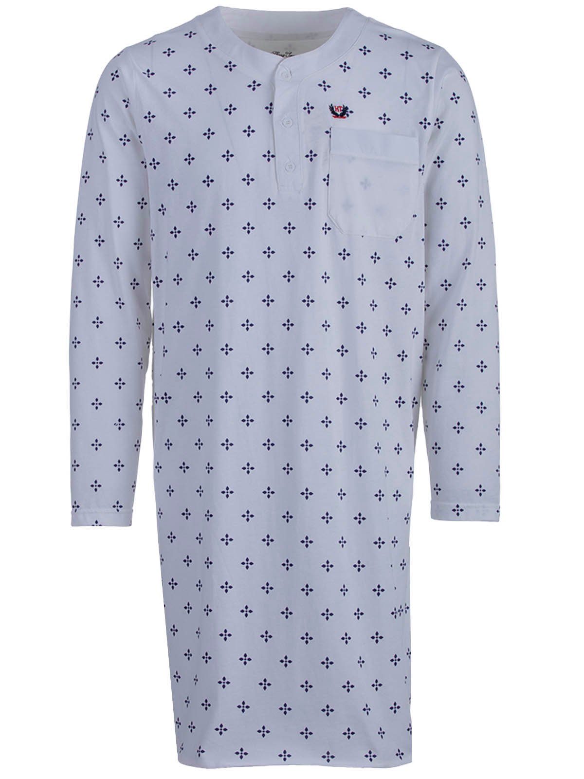 Nachthemd für Herren in klassischer Optik. Das Shirt ist angenehm und leicht auf der Haut zu tragen. Unifarbene Brusttasche.