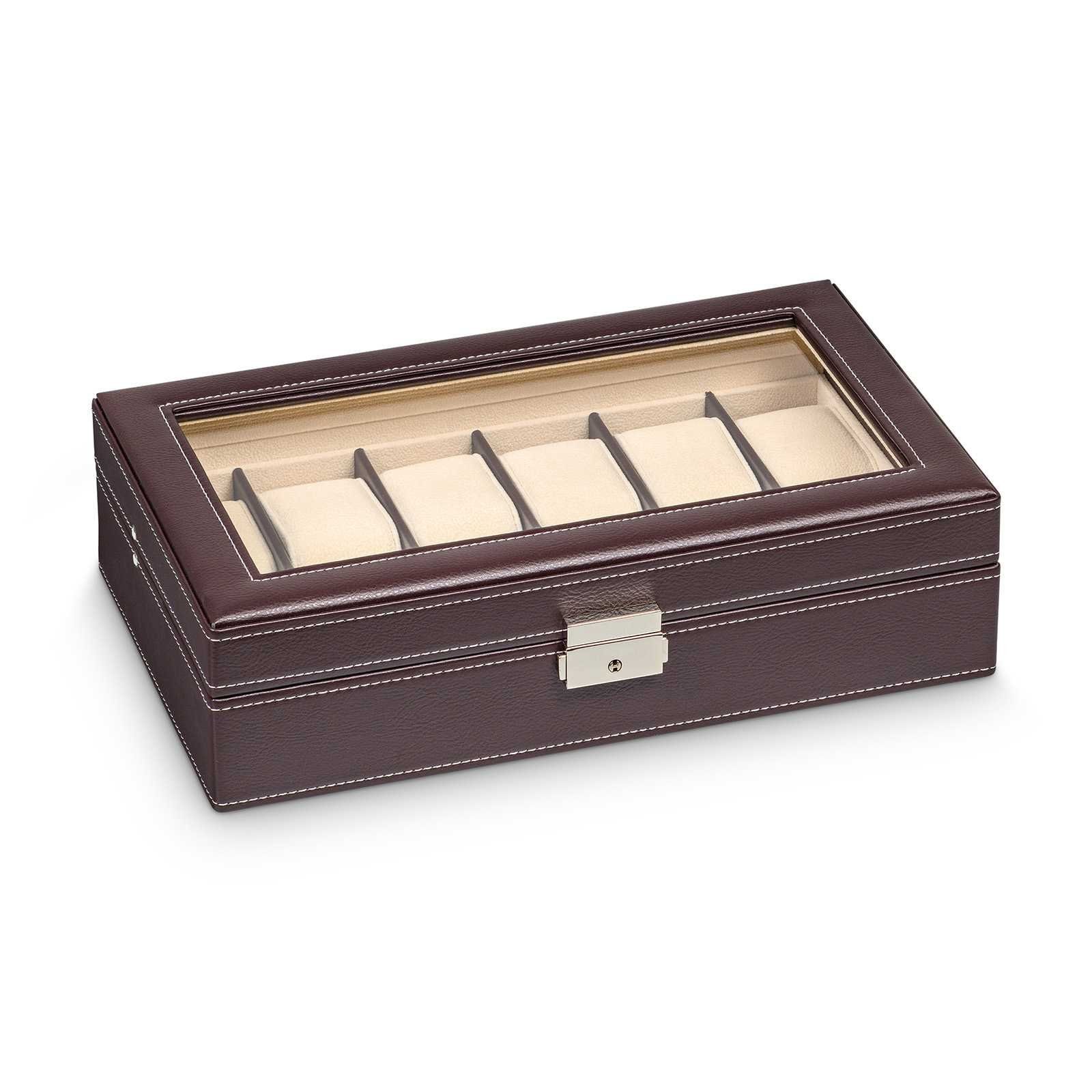 Präsentieren Sie Ihre kostbaren Zeitmesser stilvoll mit der Hermann Jäckle Crailsheim Uhrenbox. Platz für 12 Uhren, hochwertiges braunes Lederimitat verleiht Ihrer Kollektion einen Hauch von Luxus. Die perfekte Kombination aus Schutz und Eleganz. Ideal für Sammler, die Wert auf Qualität und Stil legen. Bewahren Sie Ihre Uhren sicher auf und zeigen Sie sie mit Stolz – mit der Hermann Jäckle Crailsheim.