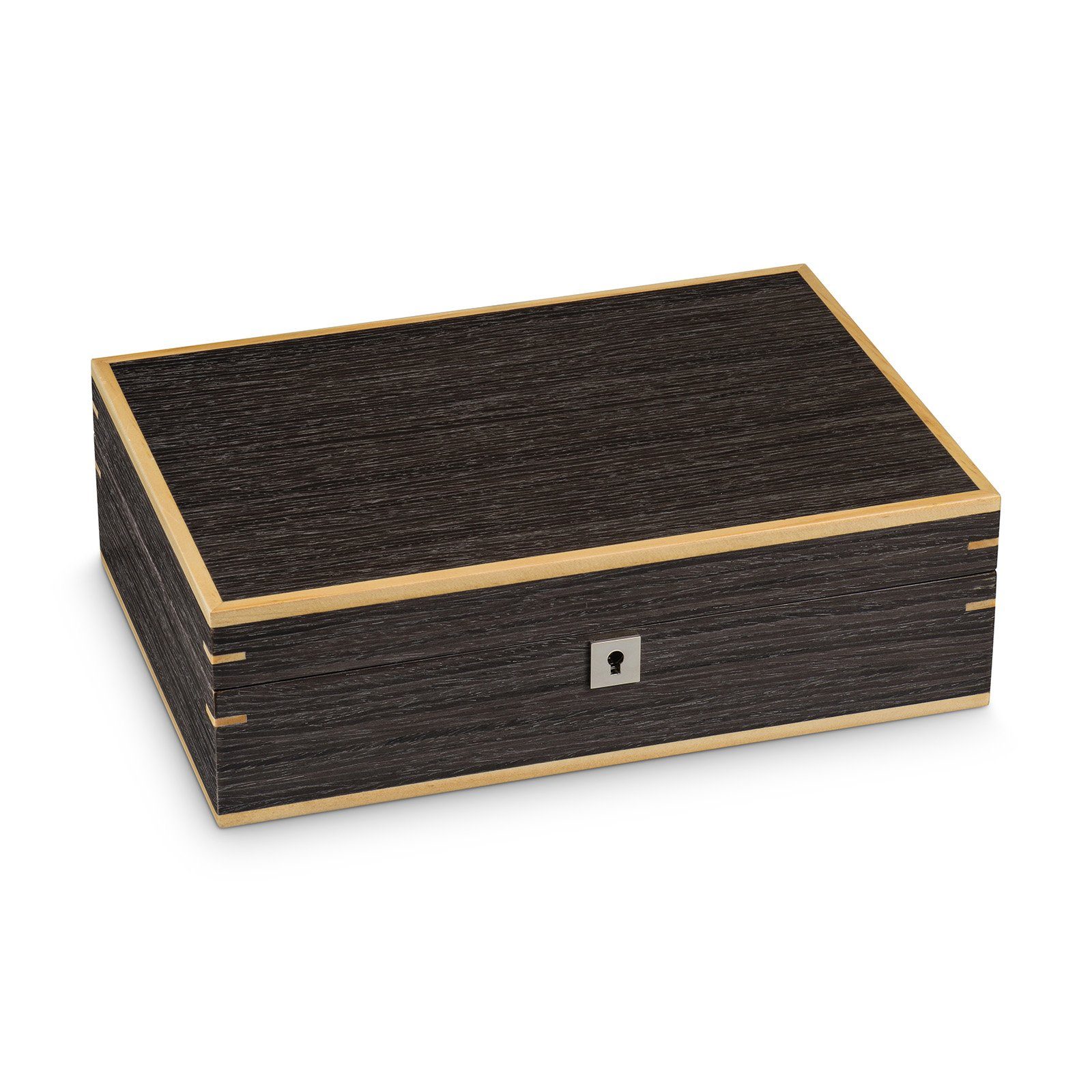 Setzen Sie Ihre Uhrenkollektion stilvoll in Szene mit der Hermann Jäckle Uhrenbox. Platz für 10 Uhren, das elegante Dekor verleiht Ihrer Sammlung einen Hauch von Luxus. Handgefertigt mit Präzision und Liebe zum Detail, bietet sie nicht nur Schutz, sondern auch eine ansprechende Präsentationsmöglichkeit. Perfekt für den anspruchsvollen Sammler, der das Besondere sucht. Bewahren Sie Ihre wertvollen Zeitmesser sicher und stilvoll auf – mit der Hermann Jäckle Uhren-Box.