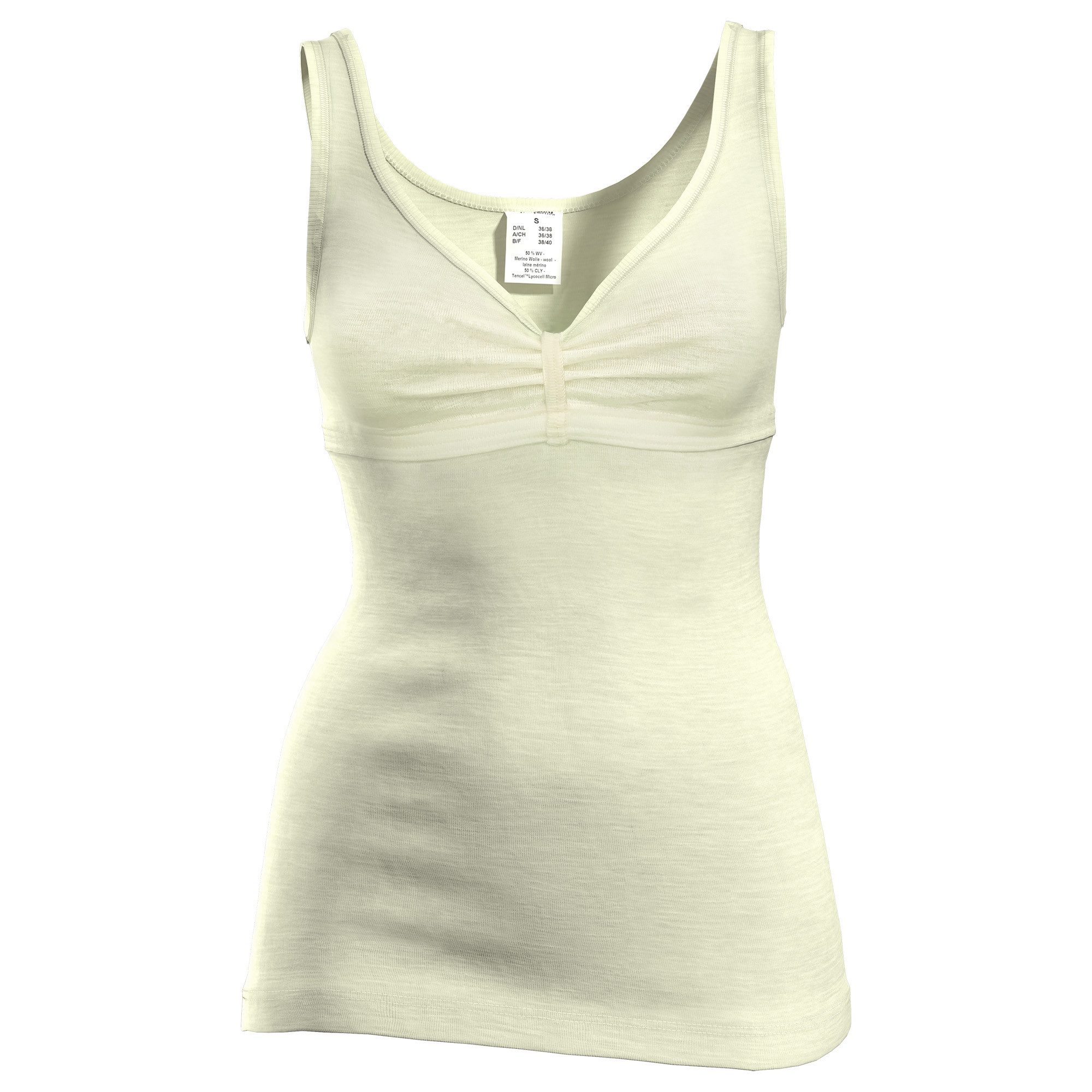 Dieses hochwertige BH-Hemd vereint natürliche Materialien mit maximalem Komfort und Funktionalität. Hergestellt aus einer hochwertigen Materialmischung von Merinowolle und Tencel, bietet das Hemd eine ausgezeichnete Temperaturregulierung und eine angenehm weiche Haptik. Der V-Ausschnitt verleiht dem BH-Hemd eine feminine Note, die sich vielseitig kombinieren lässt, während das eingenähte Unterbrustband für leichten Halt sorgt, ohne die Haut direkt zu berühren.