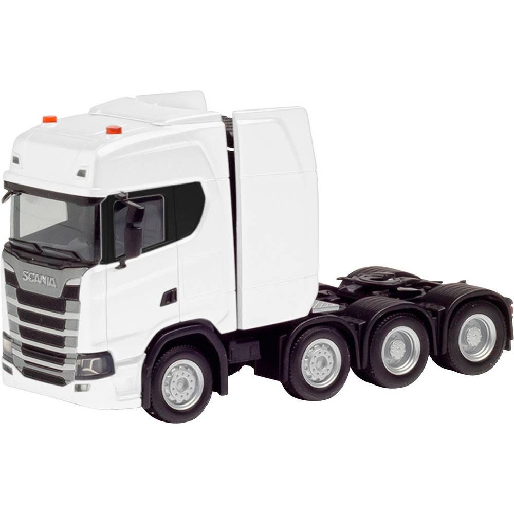 Ausstattung | Altersklasse: ab 15 Jahre · Ausführung (allgemein): CS20 Hochdach Schwerlastzugmaschine 4achs (8x4), weiß · Bauart (Modellbahn Fahrzeuge): LKW Modell · Baugröße: H0 · Fahrzeughersteller: Scania · Modellausführung (Modellbahn): Применитьmodell |