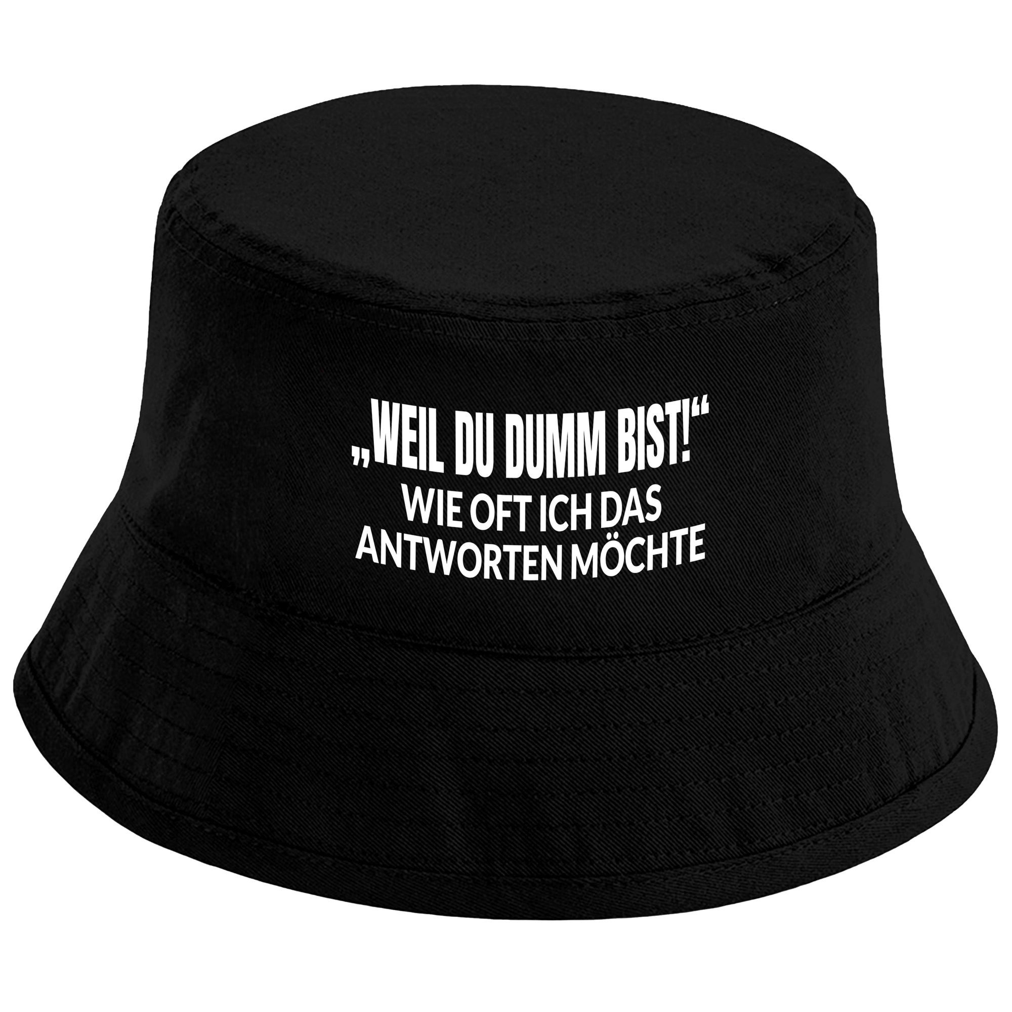 Herzbotschaft Sonnenhut Bucket Hat Weil du dumm bist! - Wie oft ich das antworten möchte (Unisex Einheitsgröße, Sommerhut mit Spruch, Festivalhut, Fischerhut) für Damen & Herren
