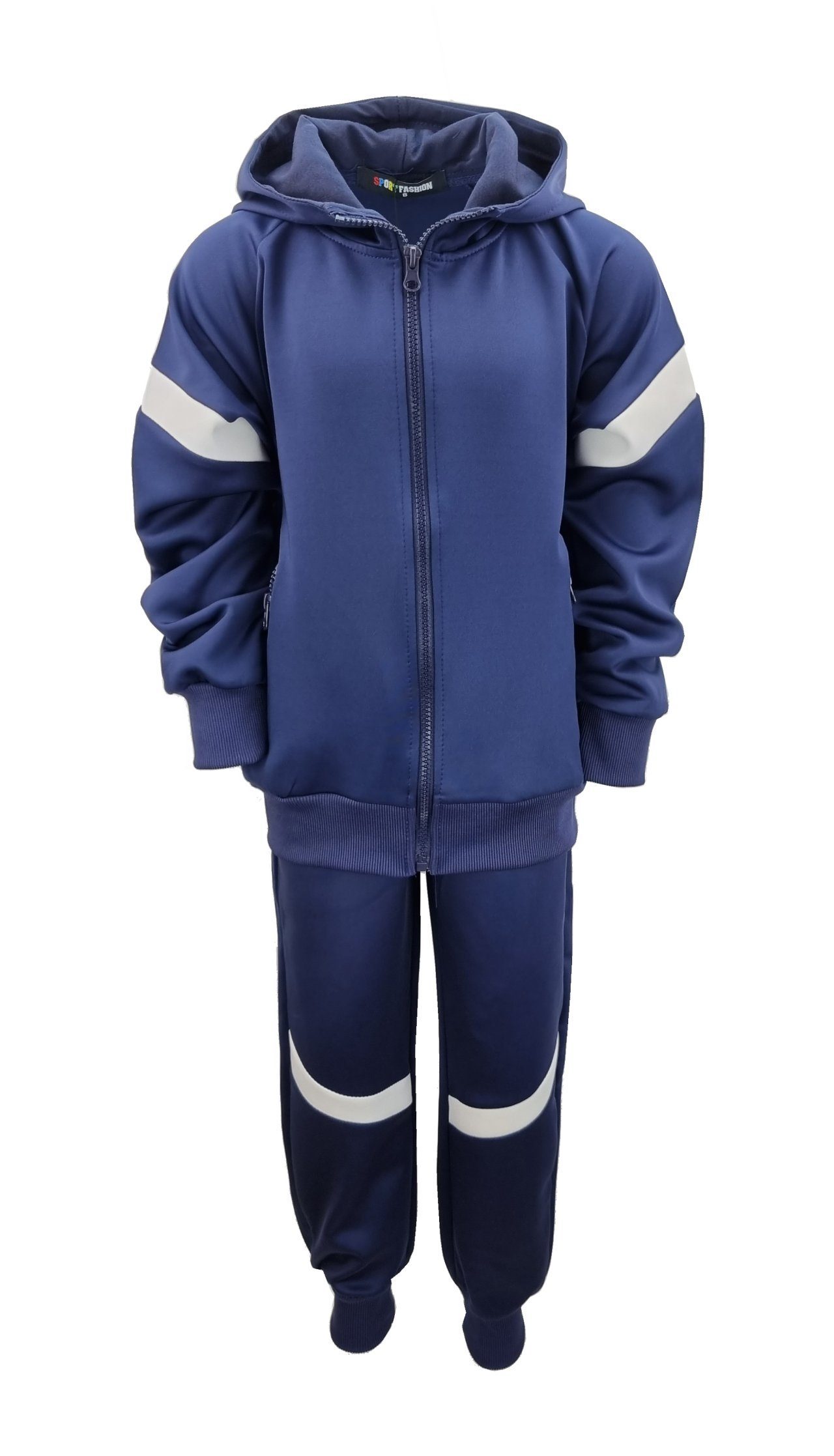 Unser Jungen Trainingsanzug mit Jacke und Jogginghose ist die perfekte Wahl für aktive Jungen, die sowohl Komfort als auch einen sportlichen Look suchen. Hergestellt aus hochwertigem Polyester, überzeugt der Anzug durch seine Strapazierfähigkeit und Atmungsaktivität – ideal für Sport, Freizeit oder entspannte Tage. Die Trainingsjacke mit Reißverschluss ist nicht nur funktional, sondern auch stilvoll. Sie verfügt über praktische Reißverschlusstaschen, in denen kleine Gegenstände sicher verstaut werden können. Die bequeme Jogginghose mit Eingrifftaschen sorgt für zusätzliche Bequemlichkeit und Stauraum und passt sich durch den elastischen Bund mit Kordelzug perfekt an die Körperform an. Der Trainingsanzug bietet eine hervorragende Bewegungsfreiheit, sodass er bei jeder Aktivität – sei es beim Training, beim Spielen im Freien oder beim Relaxen zu Hause – bequem getragen werden kann. Der moderne Schnitt und die schlichten Farben machen diesen Anzug zu einem vielseitigen Outfit für jede Gelegenheit.