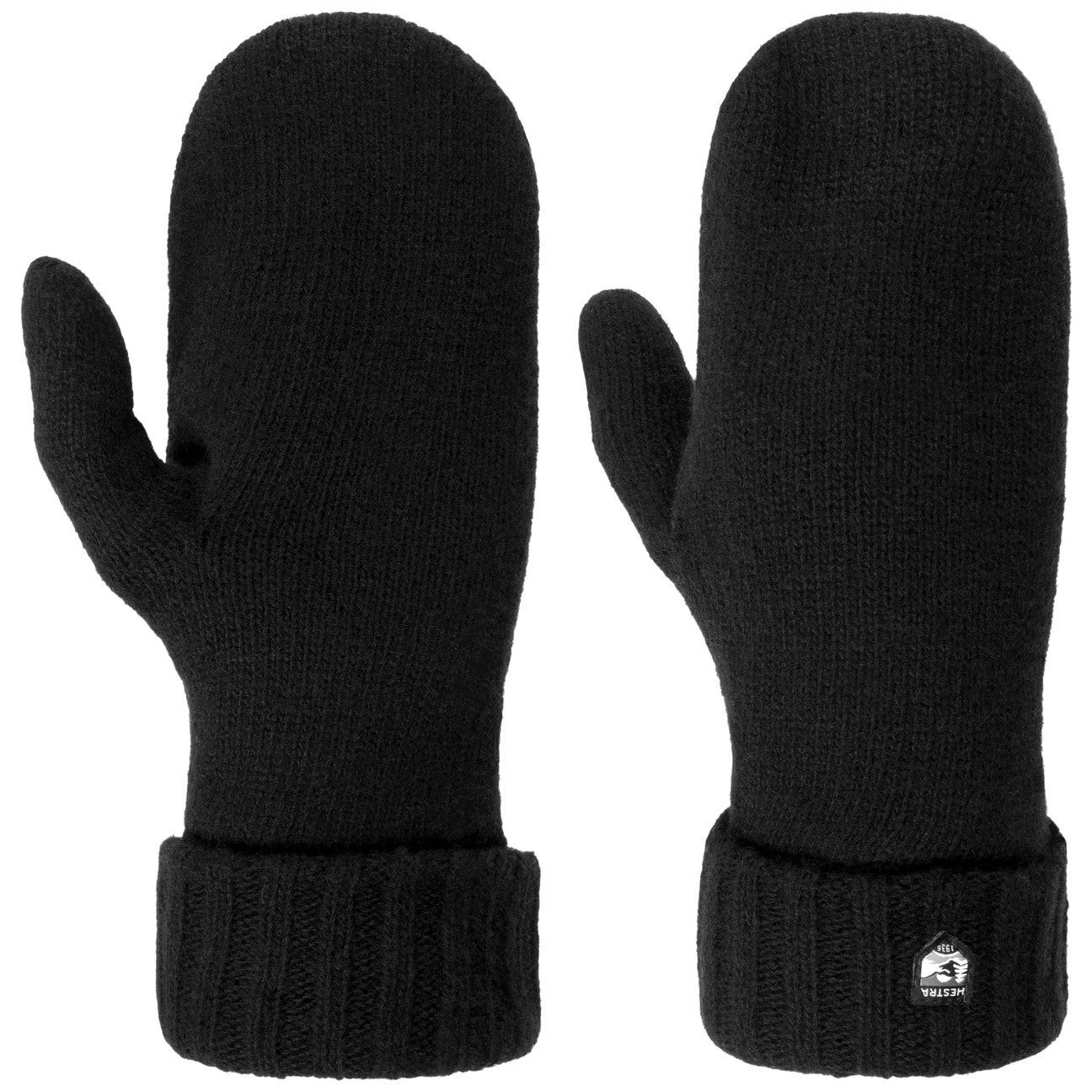 Die nächste Schneeballschlacht kommt bestimmt. Bei eisigen Temperaturen schmiegen sich die Strickfäustlinge von Hestra um die Finger und bieten ihnen mollige Wärme. Ein hoher Anteil Wolle und die Beimischung von Kaschmirfasern statten die einfarbigen Handschuhe mit weichen und anschmiegsamen Eigenschaften aus. Die Umschlagbündchen halten auch die Handgelenke warm. Mit Wollmischgewebe gefüttert.