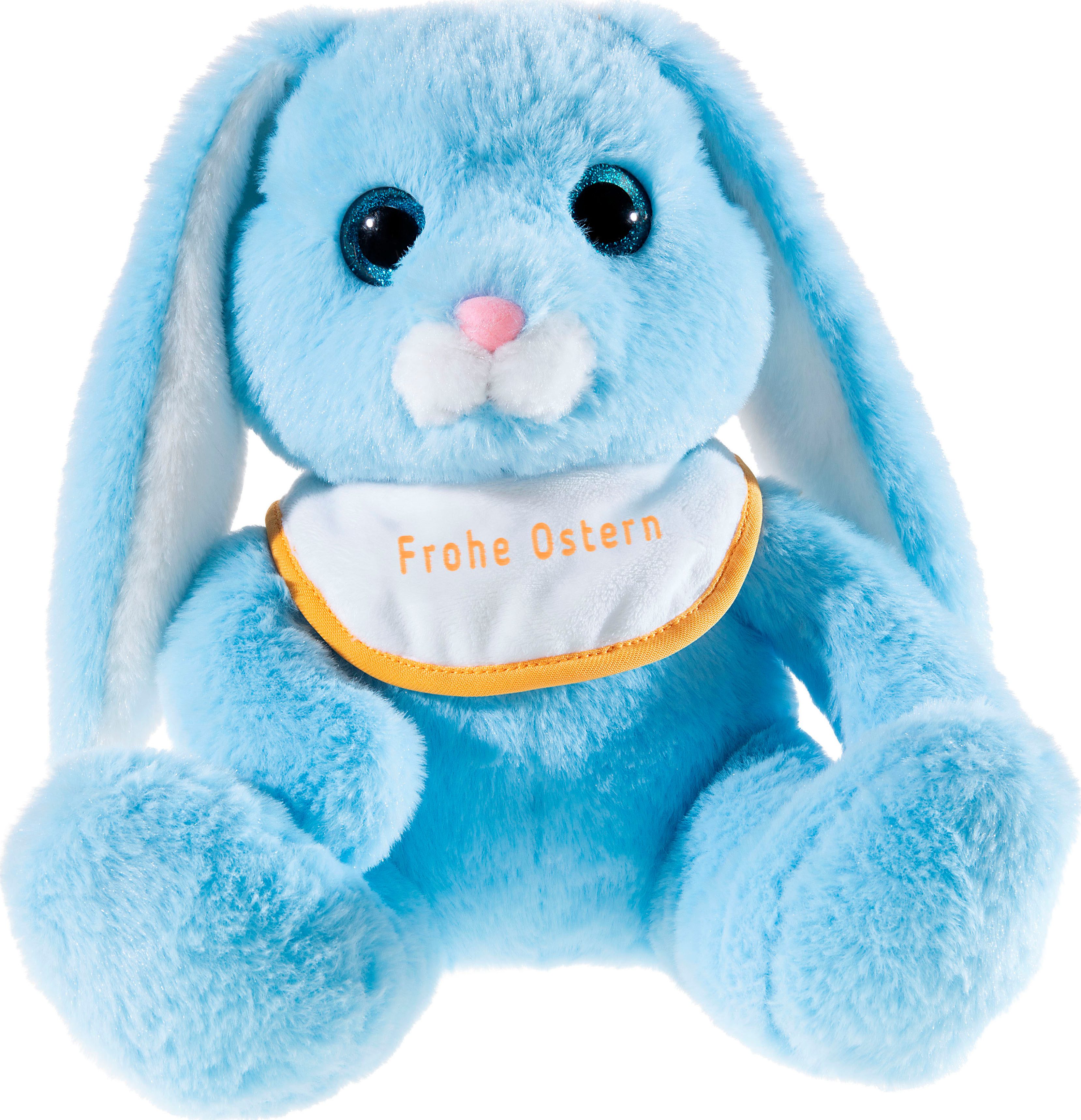 Der HASE Milchschnute in blau/weiß ist das perfekte Geschenk zu Ostern! Mit seinen 25 cm Размер und den niedlichen Schlappohren lädt er zum Kuscheln ein. Das weiße Lätzchen mit gelber Umrandung trägt die festliche Stickerei „Frohe Ostern“ und macht den Hasen zu einem liebevollen Ostergruß. Ideal als Geschenk oder Dekoration! Weiches Material, Schlappohren, Lätzchen weiß mit gelber Umrandung, Stickerei „Frohe Ostern“.