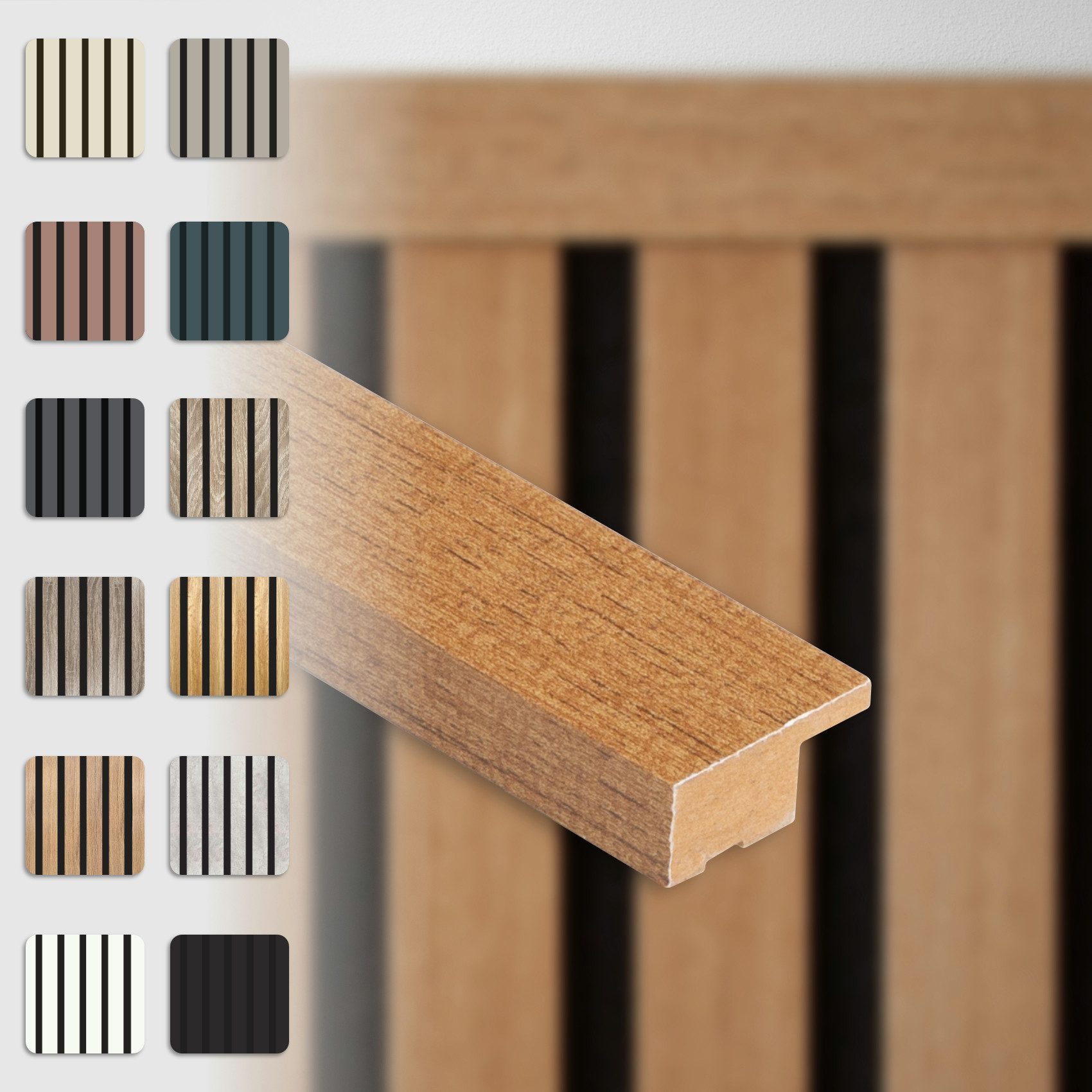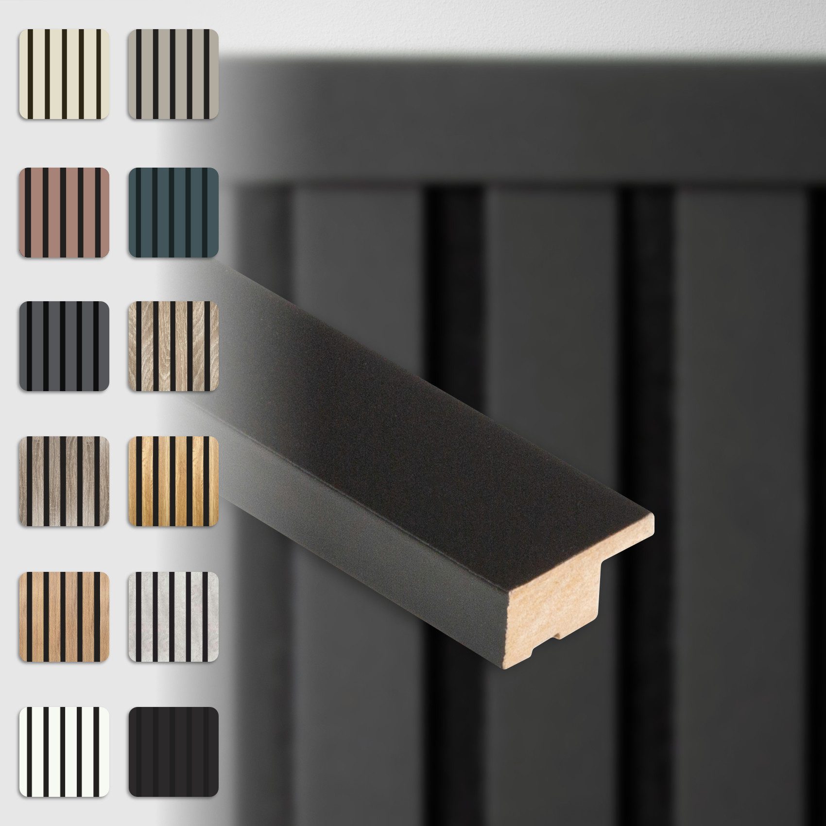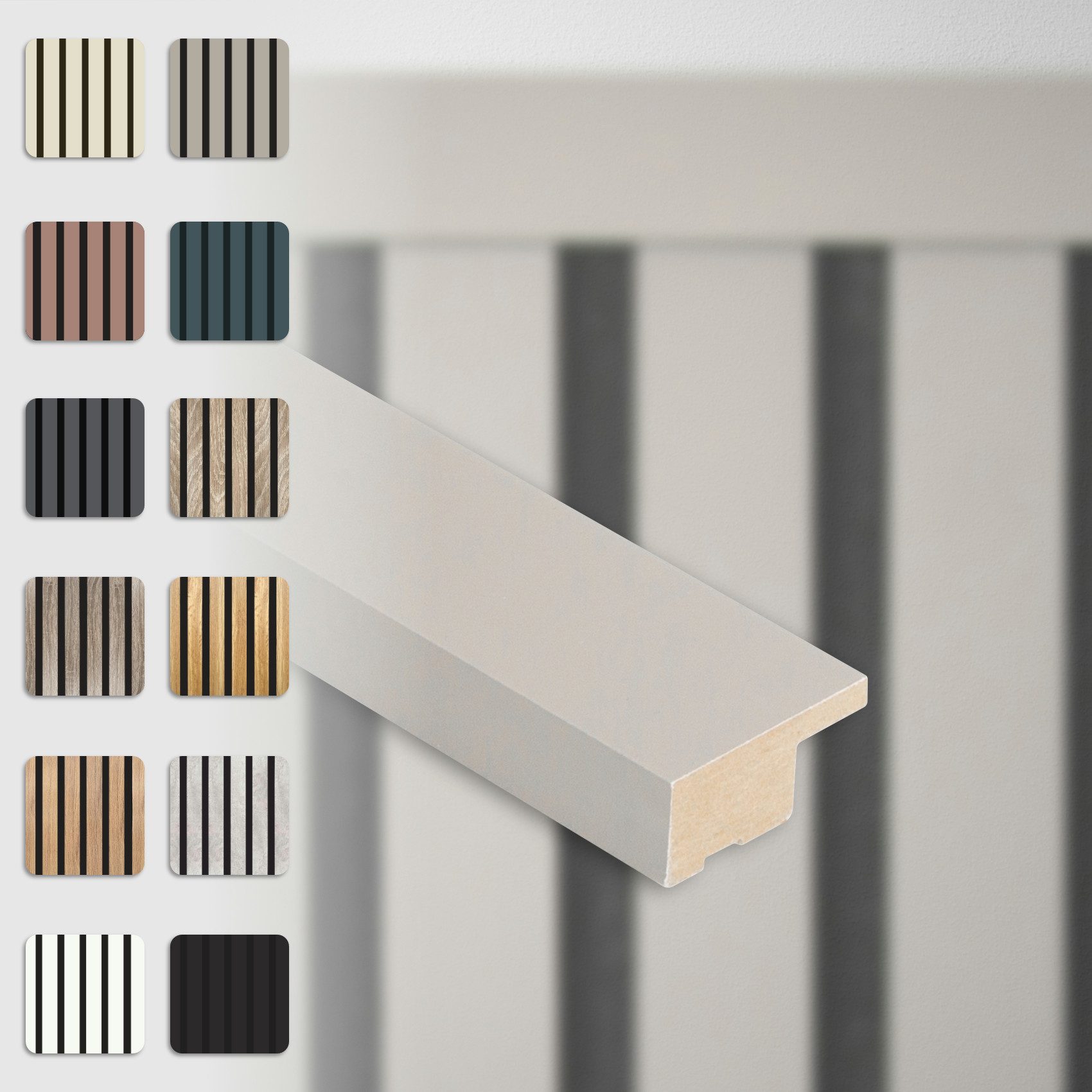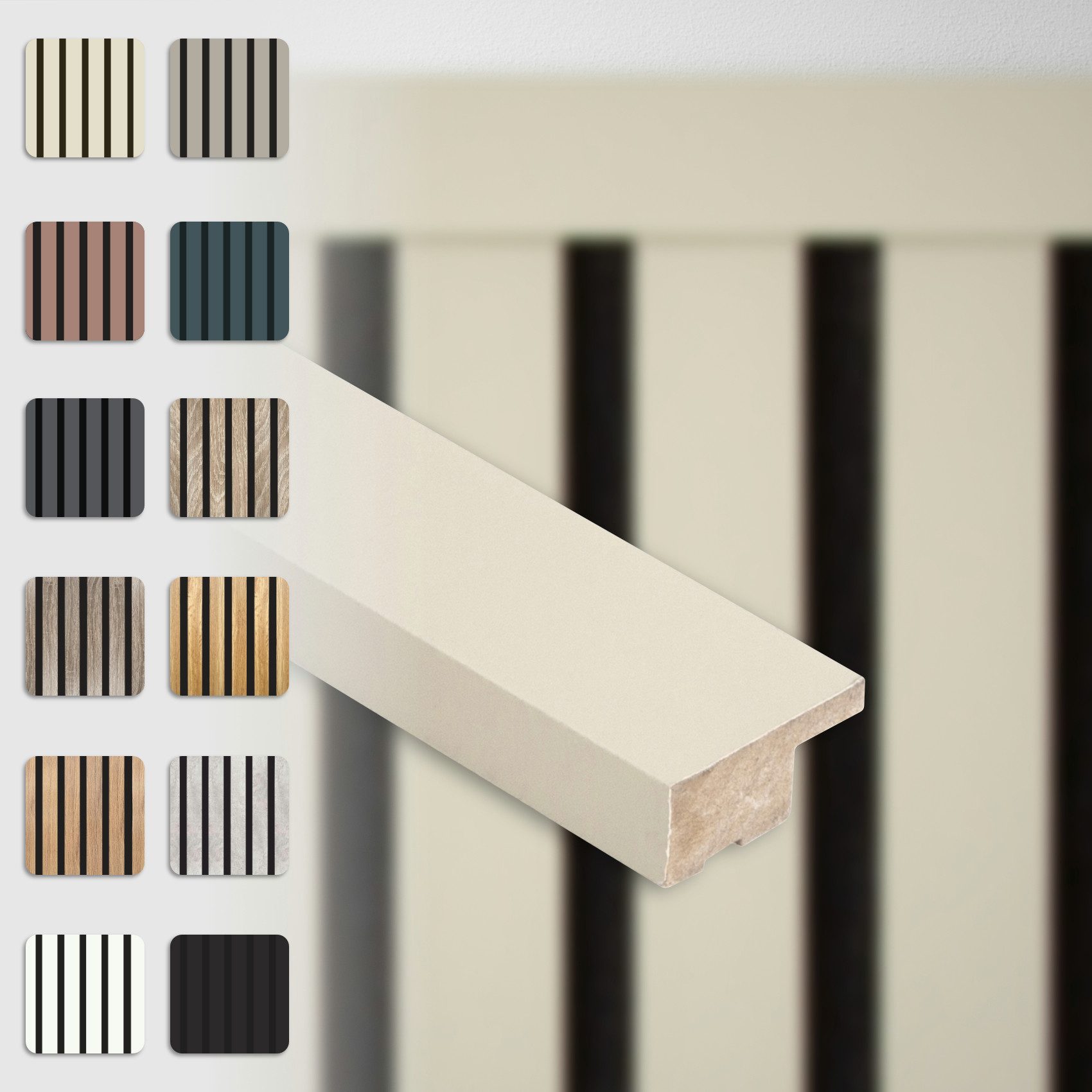Flexible Akustikpaneele / -lamellen verbessern nicht nur die Raumakustik, sondern setzen auch ästhetische Akzente in jedem Wohn- und Arbeitsraum. Durch ihre schallabsorbierende Wirkung tragen sie zu einer deutlichen Reduzierung von Hintergrundgeräuschen und Nachhall bei, was die Sprachverständlichkeit erhöht und für eine angenehme Raumakustik sorgt. Ob Büro, Wohnzimmer oder Ruheraum, unsere Akustikplatten sind die perfekte Wahl, um eine optimale Balance zwischen Funktion und Design zu erreichen. Gegenüber herkömmlichen Akustikplatten haben die flexiblen Paneele den Vorteil, dass sie sich elegant um Ecken, Kanten und Rundungen legen lassen. Zusätzlich bieten wir passende Abschlussleisten an, die vorne, unten oder seitlich montiert werden können. Diese Leisten verdecken sauber Filzreste oder unsaubere Kanten und sorgen für ein harmonisches Gesamtbild.