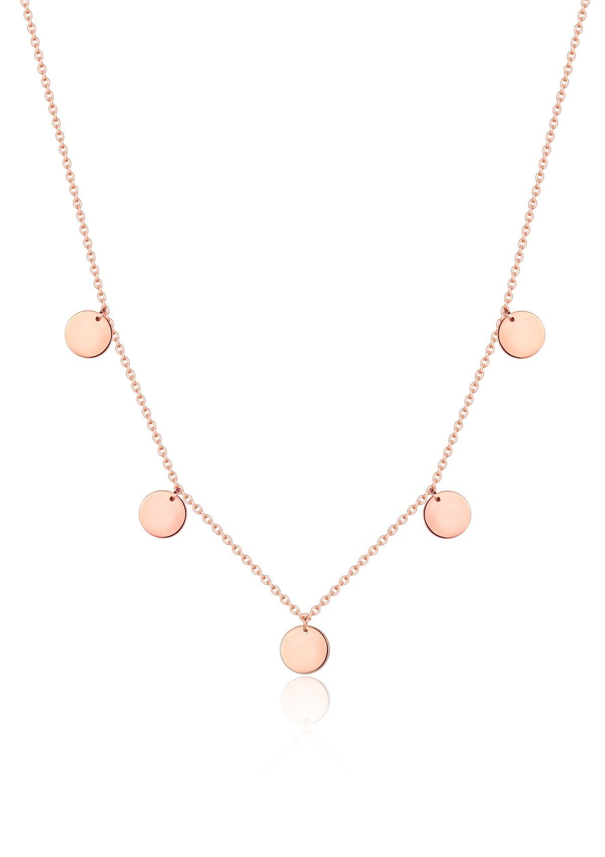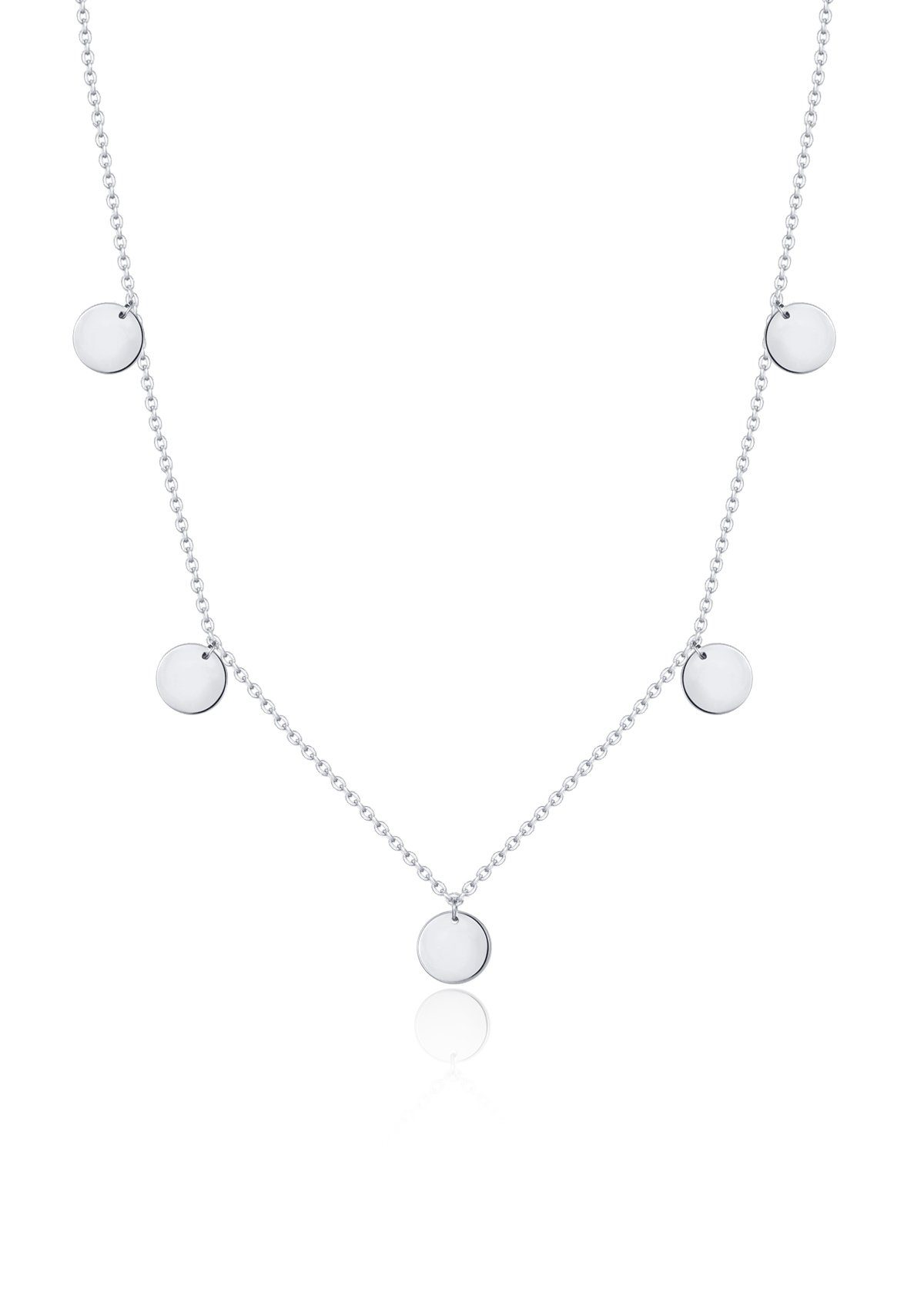 Absoluter zeitloser Klassiker - modern und elegant, die perfekte Ergänzung zu jedem Outfit! Diese Kette mit Anhängern im kreisförmigen Design ist aus Edelstahl, geschmückt mit 5 kleinen runden Anhängern im Plättchendesign. Vielseitig kombinierbar, geeignet für jeden Tag und jeden Anlass. Die Kette kann auch in Kombination mit anderen Ketten für einen modernen Layer-Look getragen werden.