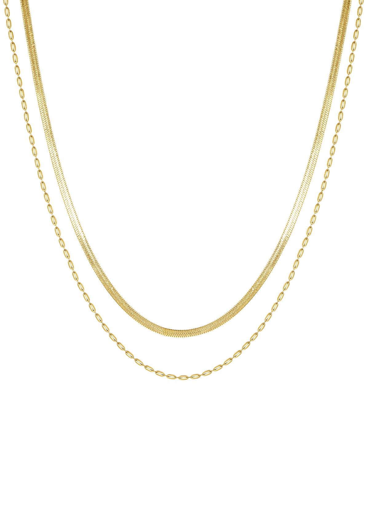 Diese elegante zweireihige Kette kombiniert eine feine Schlangenkette mit einer zarten Ovalgliederkette – ein zeitloses Duo, das jedem Outfit Stil verleiht. Gefertigt aus wasserfestem Edelstahl und erhältlich in Gold, Roségold und Silber – perfekt zum täglichen Tragen oder zum Layern mit Ihren Lieblingsstücken.