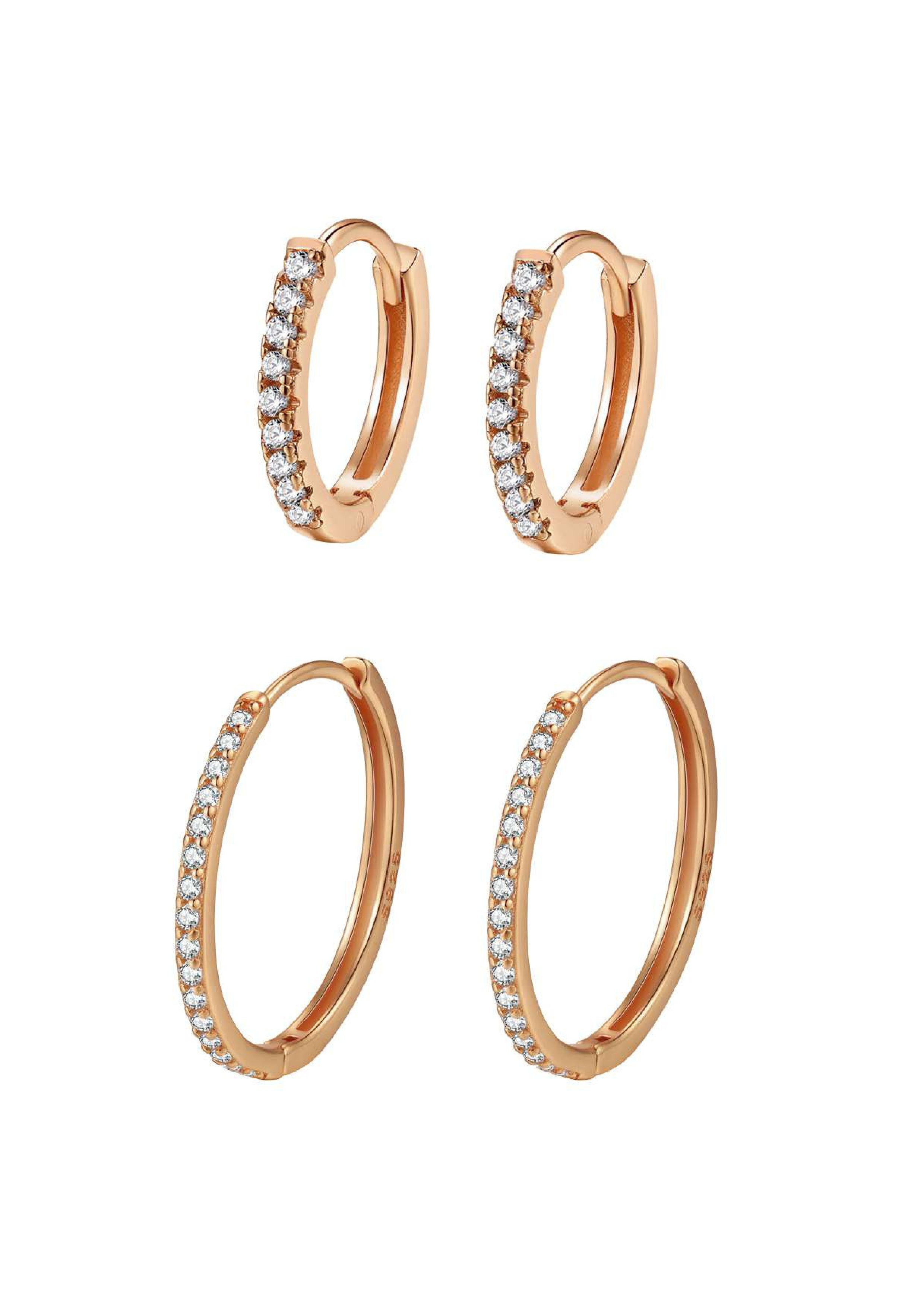 Diese Creolen mit klaren Steinen sind die perfekte Ergänzung für jede Schmucksammlung. Das Set enthält zwei Paar Creolen in verschiedenen Größen, die sich ideal zum Kombinieren eignen. Jede Creole aus 925er Silber ist entlang der Kanten mit funkelnden Zirkonia-Steinen besetzt, was jedem Outfit einen Hauch von Eleganz verleiht. Wählen Sie zwischen Gold, Roségold oder Silber für einen vielseitigen und stilvollen Look.