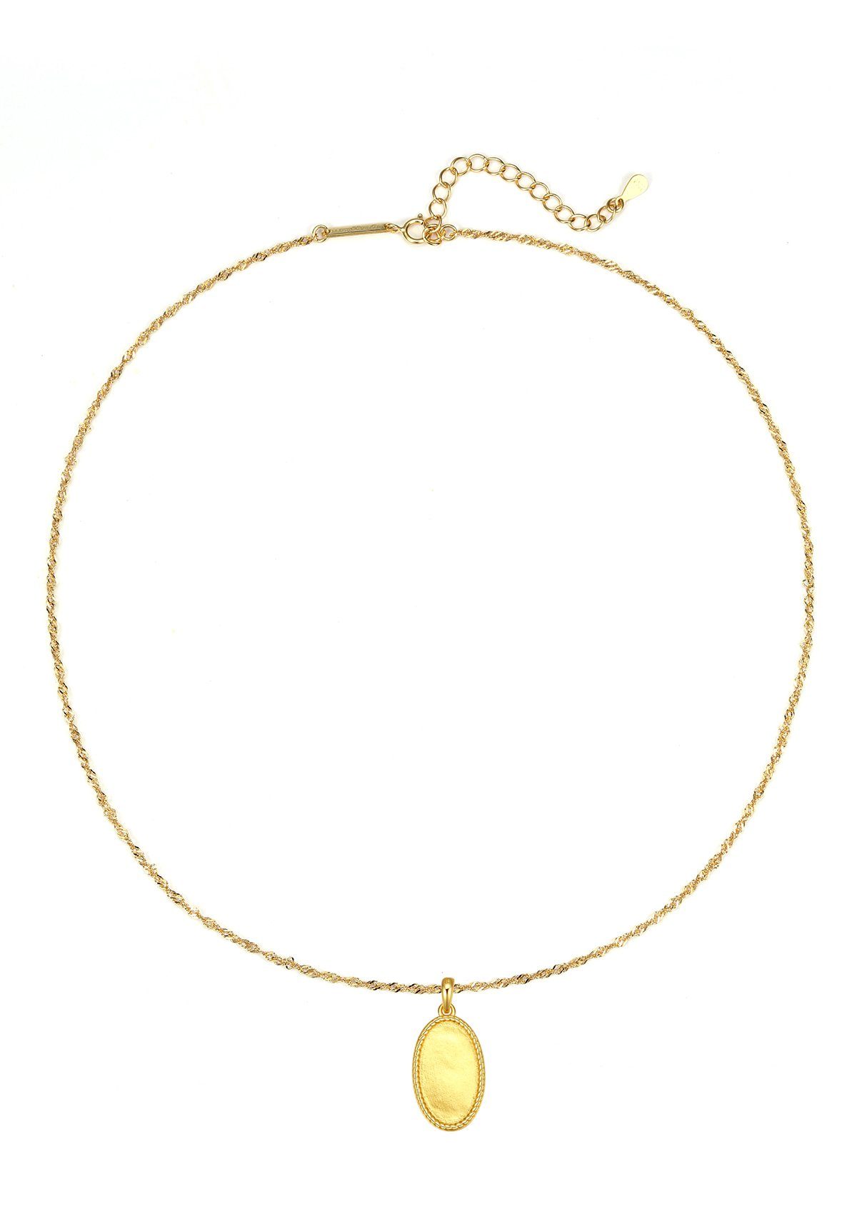 Diese Damen Kette mit einem ovalen Anhänger ist aus 925er Sterlingsilber gefertigt. Die Seilkette wird Ihrem Outfit einen Hauch von Eleganz verleihen, und kann zu beliebigen Looks getragen werden. Erhältlich in Silber und Gold. Die goldene Kette ist zusätzlich mit 18K Gold überzogen.