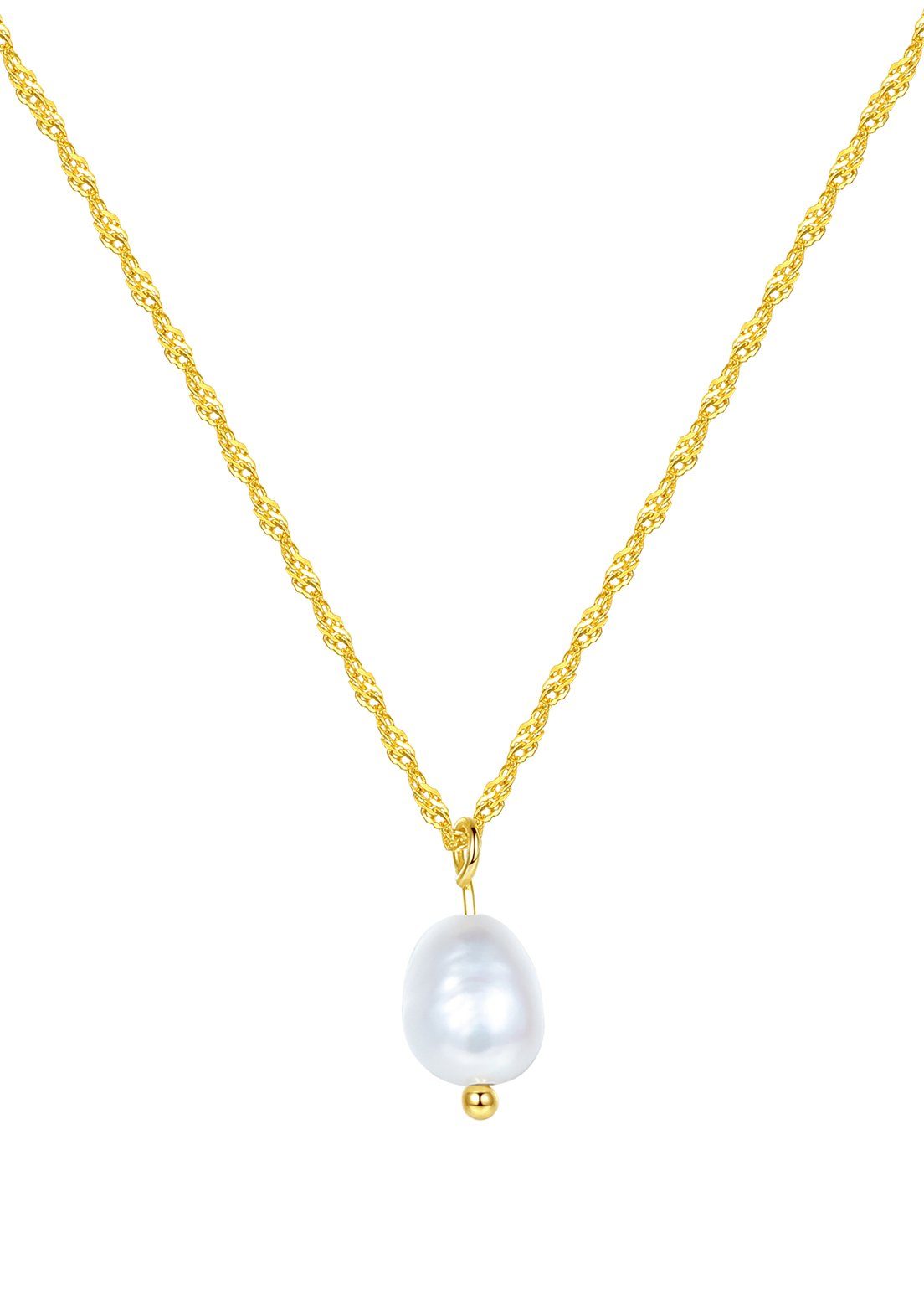 Applikationen | Kette mit hängender Perle, Schmuck in Singapur Design, Kettenglieder in gedrehter Optik, Collier Perle, Tropfen Anhänger, Halskette mit Anhänger |