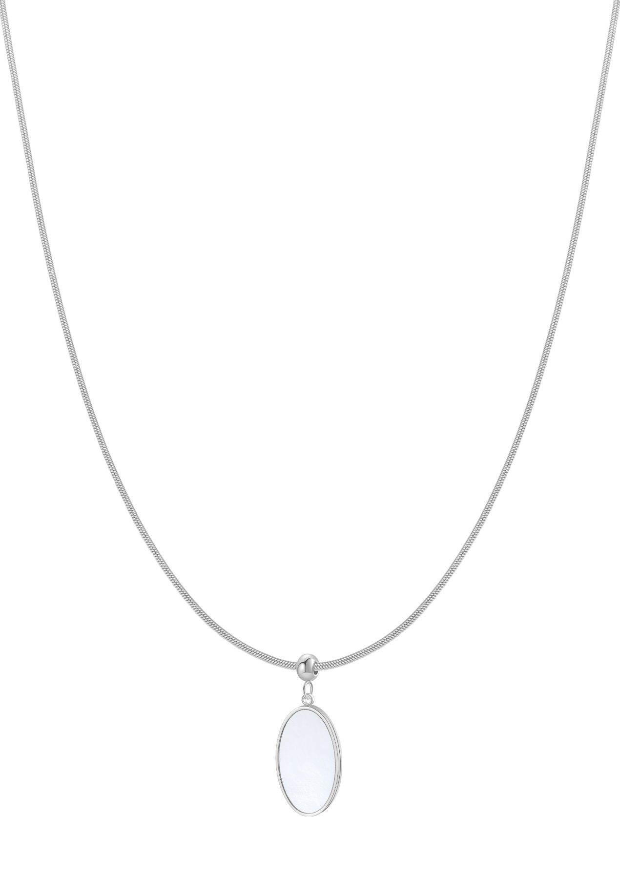 Elegante Ketten mit einem glänzenden, irisierenden Perlmutt Besatz - ein zeitloses Schmuckstück mit dem ovalen Anhänger mit einem einzigartigen, irisierenden Farbeffekt.. Die kleine Metallperle mit ihrem rutschfesten Silikonkern stellt sicher, dass der Anhänger nicht auf der Kette verrutscht.