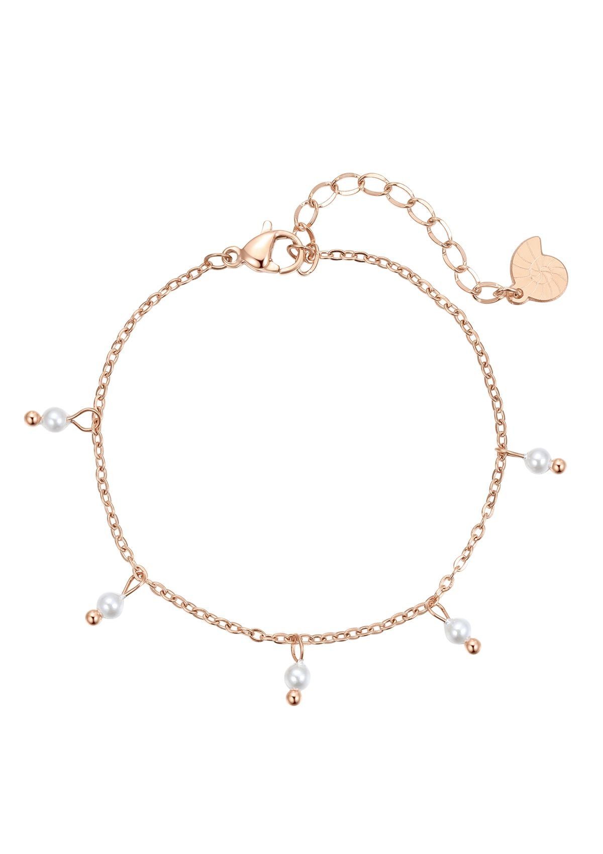 Dein Must-Have im Sommer! Armband aus Edelstahl, geschmückt mit 5 kleinen Kunstperlen. Das Armband hat einen stabilen Karabinerverschluss, die Длина ist verstellbar und an dem Verlängerungskettchen hängt ein Schneckenhaus-Anhänger. Das Design ist minimalistisch und stilvoll und wird sowohl Casual als auch eleganten Outfits aufpeppen.