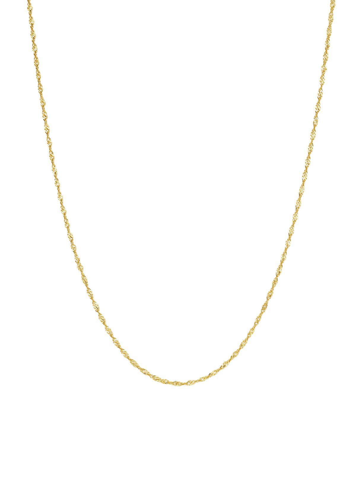 Charakteristisch für die Singapurkette ist die enge, verschlungene Verknüpfung der Kettenglieder, die zusätzlich gedreht sind. Diese feine Silber Singapurkette hat einen Federringverschluss, die Длина ist verstellbar und an dem Verlängerungskettchen hängt ein runder Anhänger. Die Kette ist schlicht und geeignet für jeden Tag und kann solo oder in Kombination mit Anhängern getragen werden.