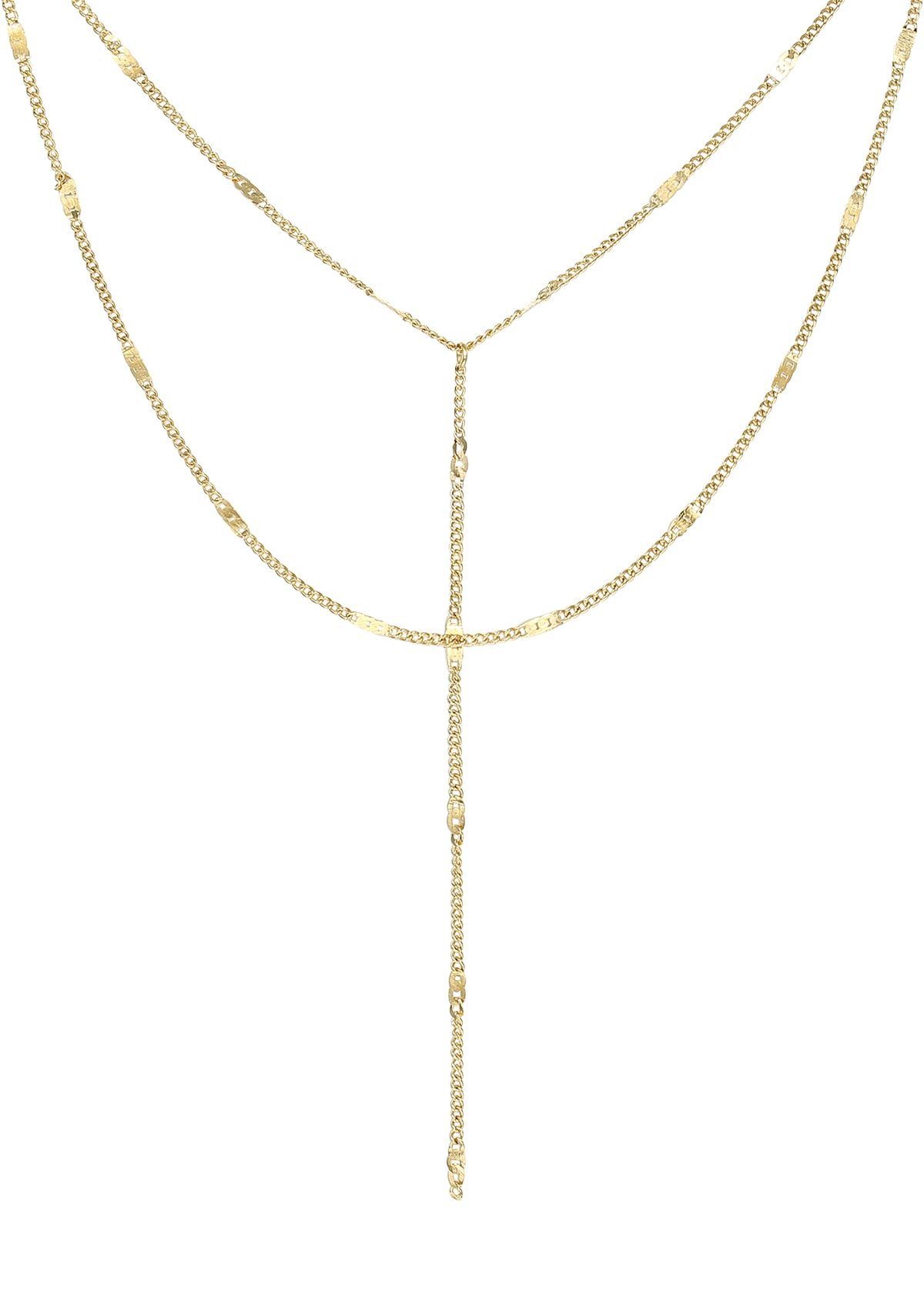 Applikationen | Kette mit mehreren Sätzen abgeflachter Kettenglieder, ohne Anhänger, Kettenlieder im Kabelstil, im Y Design, Lasso Kette, Doppelkette |