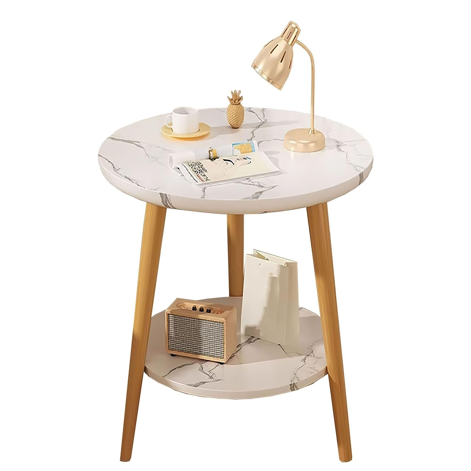 Hochwertige Materialien Dieser doppelschichtige kleine runde Tisch besteht aus MDF und Holz mit glatter Oberfläche. Er ist sicher und langlebig, leicht zu reinigen, wasserdicht und feuchtigkeitsbeständig und sorgt für langfristige Zuverlässigkeit und Ästhetik.