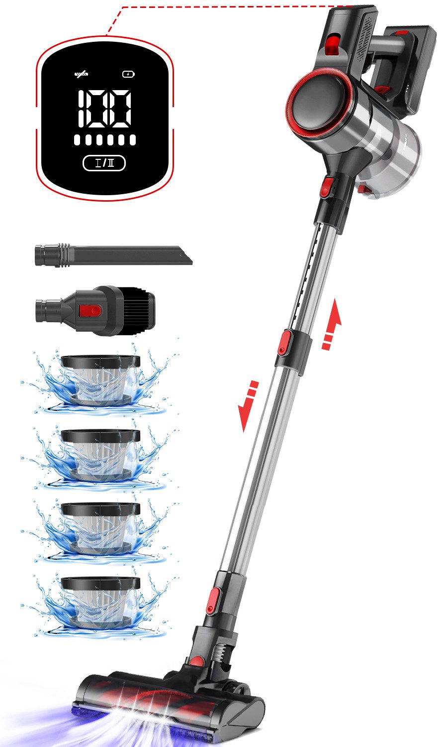 Art des Staubfangbehälters | LED Touchscreen, bis zu 50 Minuten, Anti-Tangle-Bürste |