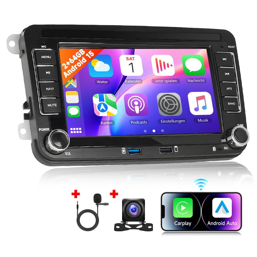 Android 15.0 System Autoradio für Volkswagen: Размер des Auto-Players: 220 (Breite oben) x 128 (Höhe) x 21 (Breite unten) mm, 7 Zoll kapazitiver Touchscreen, praktische Seitentasten. Ultraklares Full HD-Display. Mit zwei USB-Anschlüssen an der Vorderseite (einer zum Laden, einer zum Auslesen von Daten).
