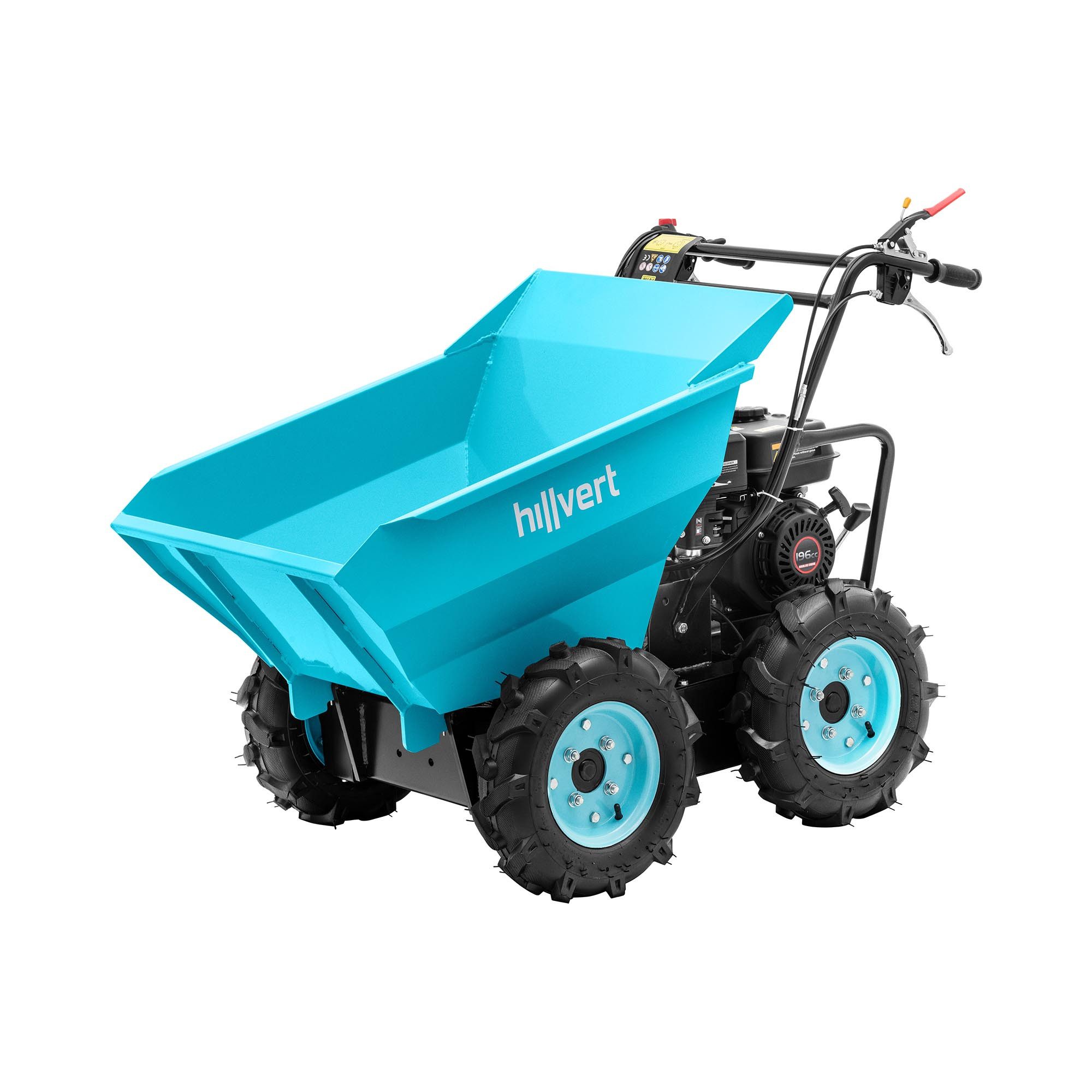 Der wartungsarme Minidumper ist das ideale Hilfsmittel im Baugewerbe, in der Landwirtschaft oder bei Projekten im Garten. Dank des 6.5 PS starken Motors bewegen Sie Lasten bis zu 400 kg – durch den Allradantrieb auch mühelos Steigungen bis zu 20° hinauf. Dabei manövrieren Sie den wendigen Allraddumper ganz einfach. Wählen Sie, je nach Situation, zwischen 3 Vorwärts- und einem Rückwärtsgang. Die Fahrtrichtung steuern Sie bequem per Handgriff.