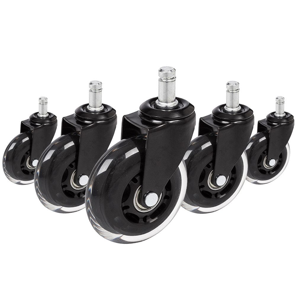 Diese Rollen sind die ideale Ergänzung zu Ihrem neuen Bürostuhl! Vom Design erinnern diese Rollen an Skates oder Roller. Die speziell beschichteten Laufflächen schützen Ihren hochwertigen Hartboden vor Kratzern und Blessuren die herkömmlichen Teppichbodenrollen verursachen können. Das Auswechseln der Rollen ist schnell erledigt. Die alten Rollen lassen sich mit ein wenig Kraftaufwand ganz einfach abziehen. Dann nur noch die neuen Hartbodenrollen einstecken - fertig!